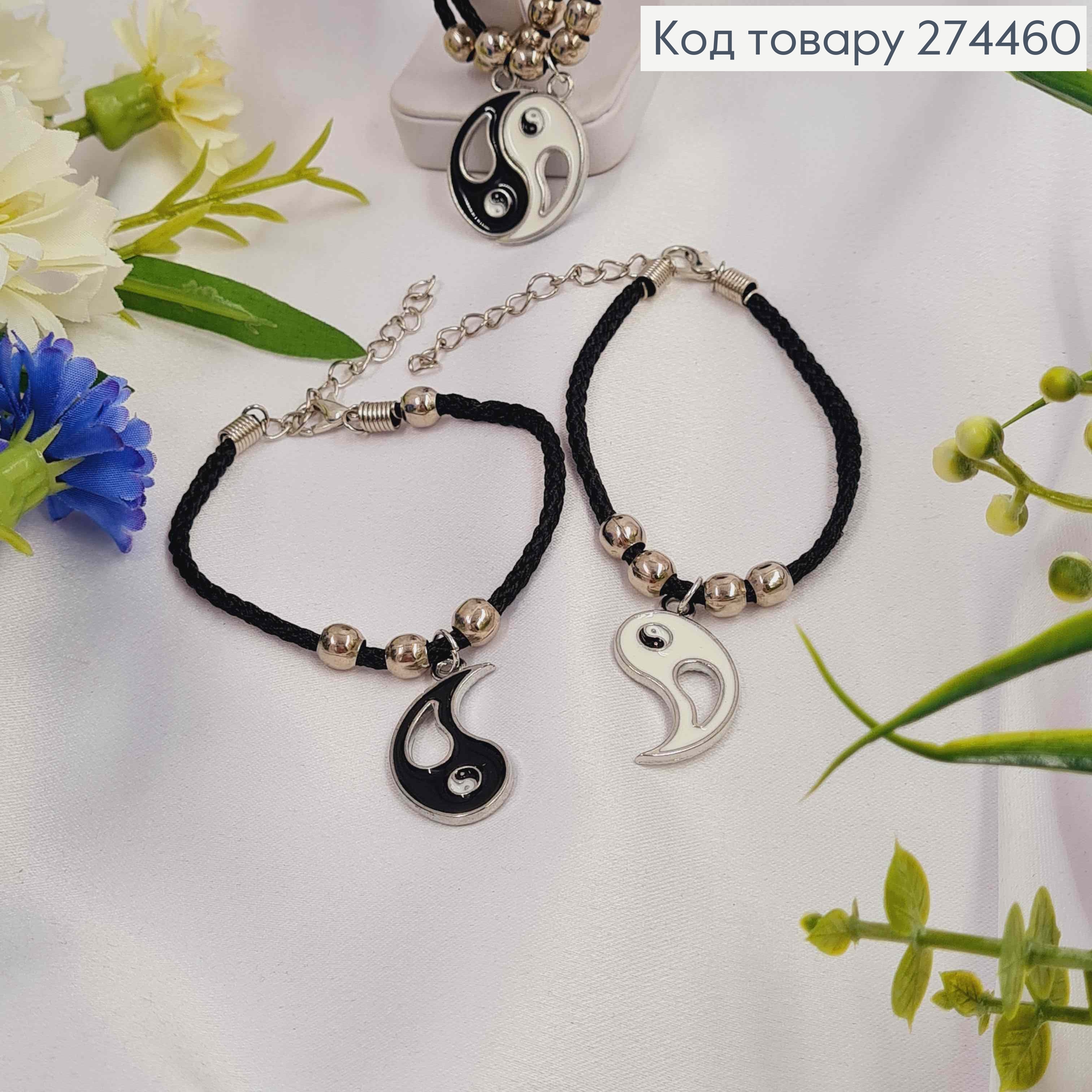 Браслет плетеный черный, с бусинками и подвеской "Инь Янь", 2шт/уп, 14+5см