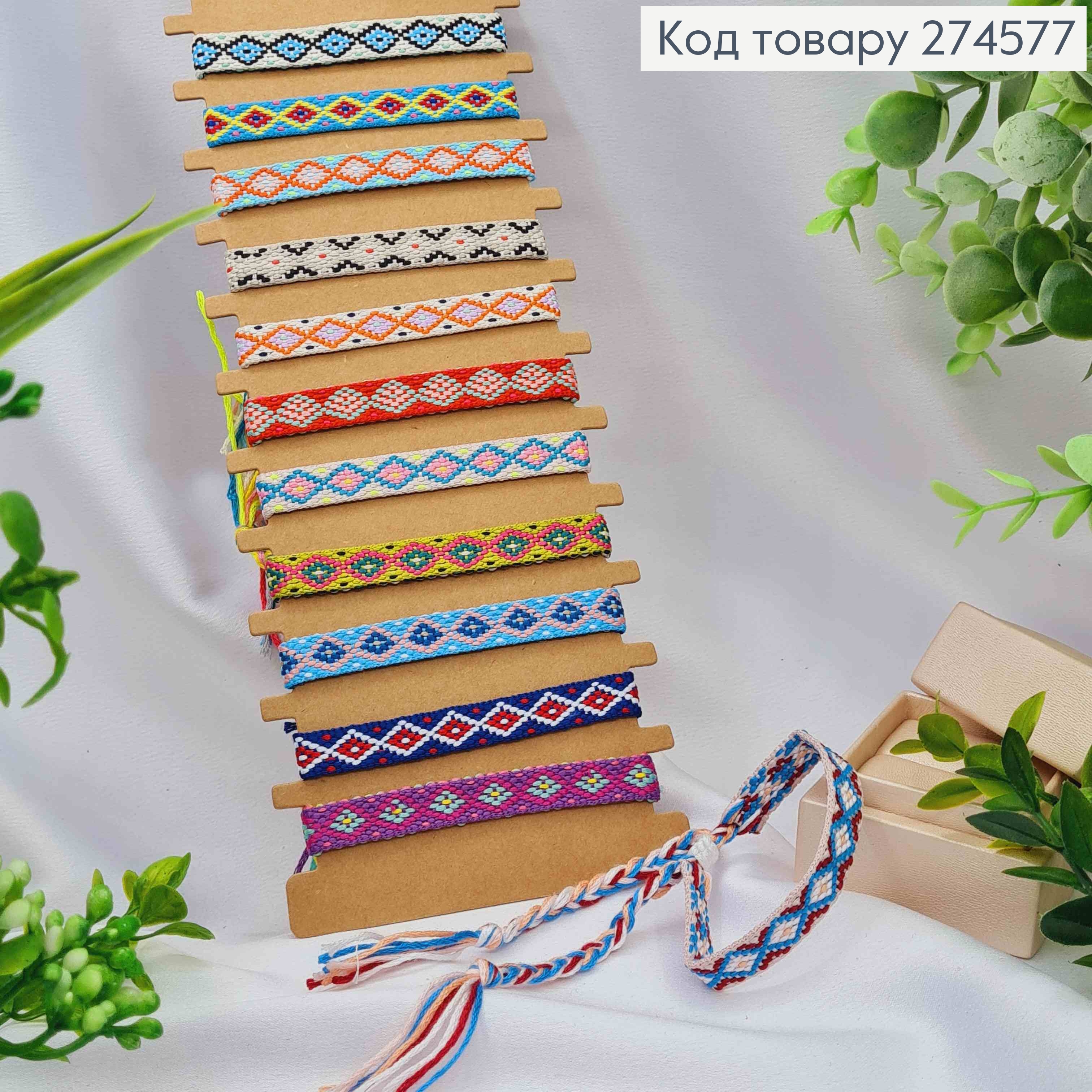 Браслет с этническим орнаментом, на затяжке, в ассортименте, ширина 1см