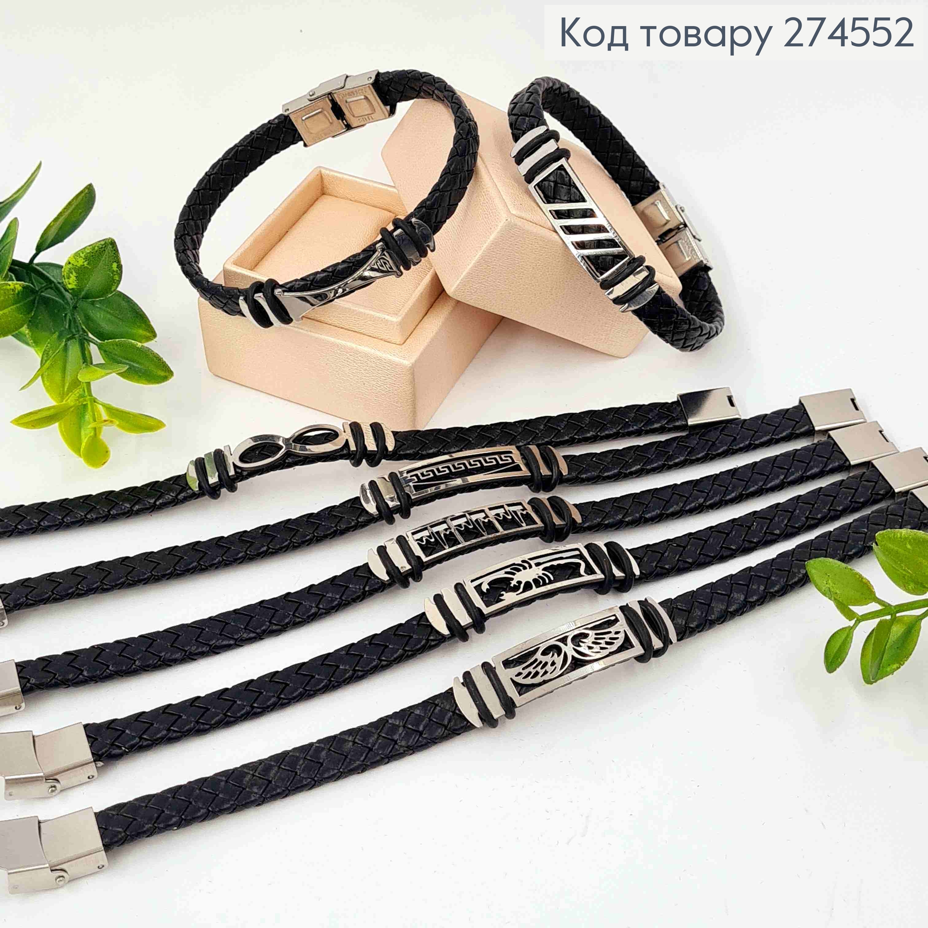 Браслет плетеный, с металлической пластинкой, с узором в ассорт., шир. 1см, дл. 21см