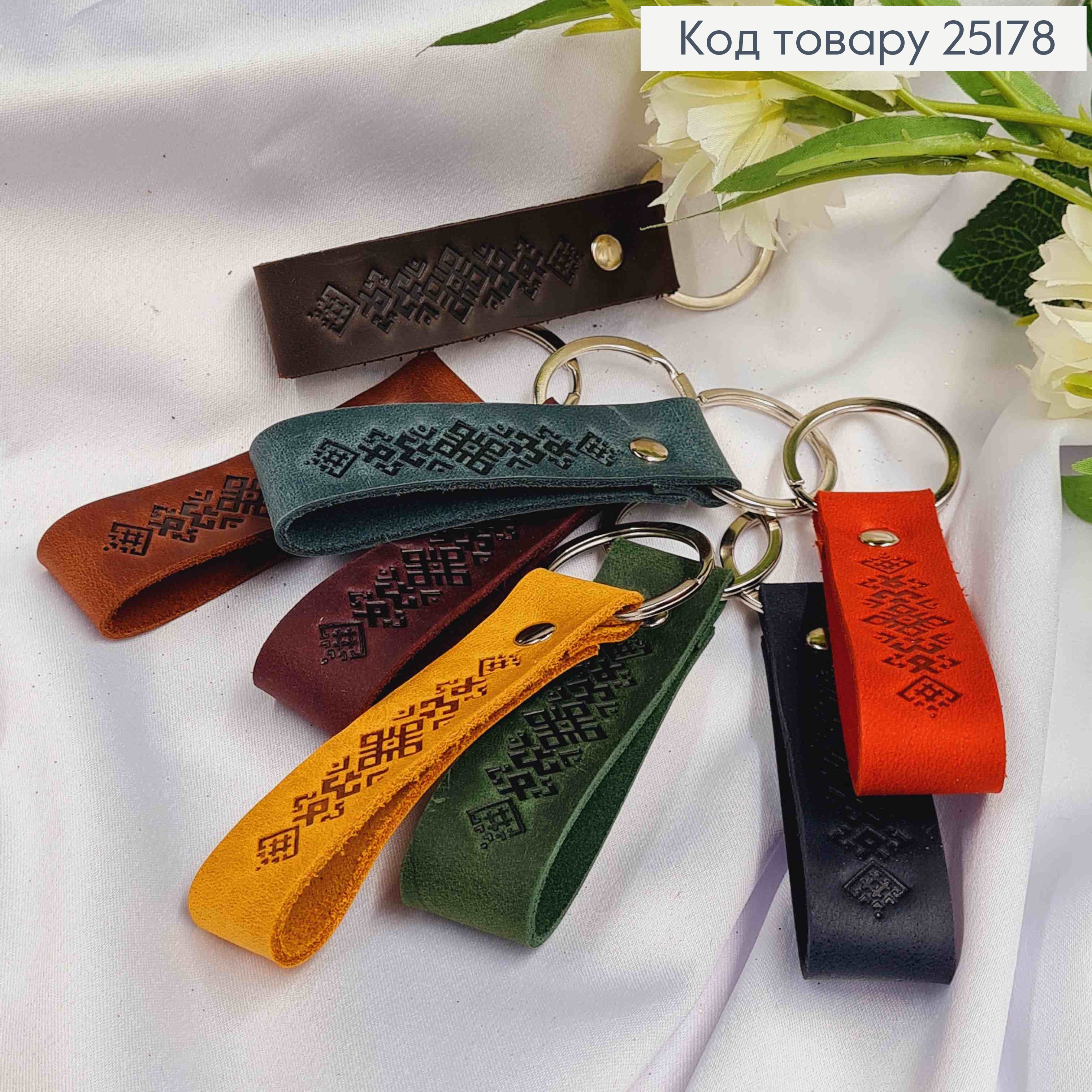 Брелок кожаный, с орнаментом, 8*2см, в ассортименте.