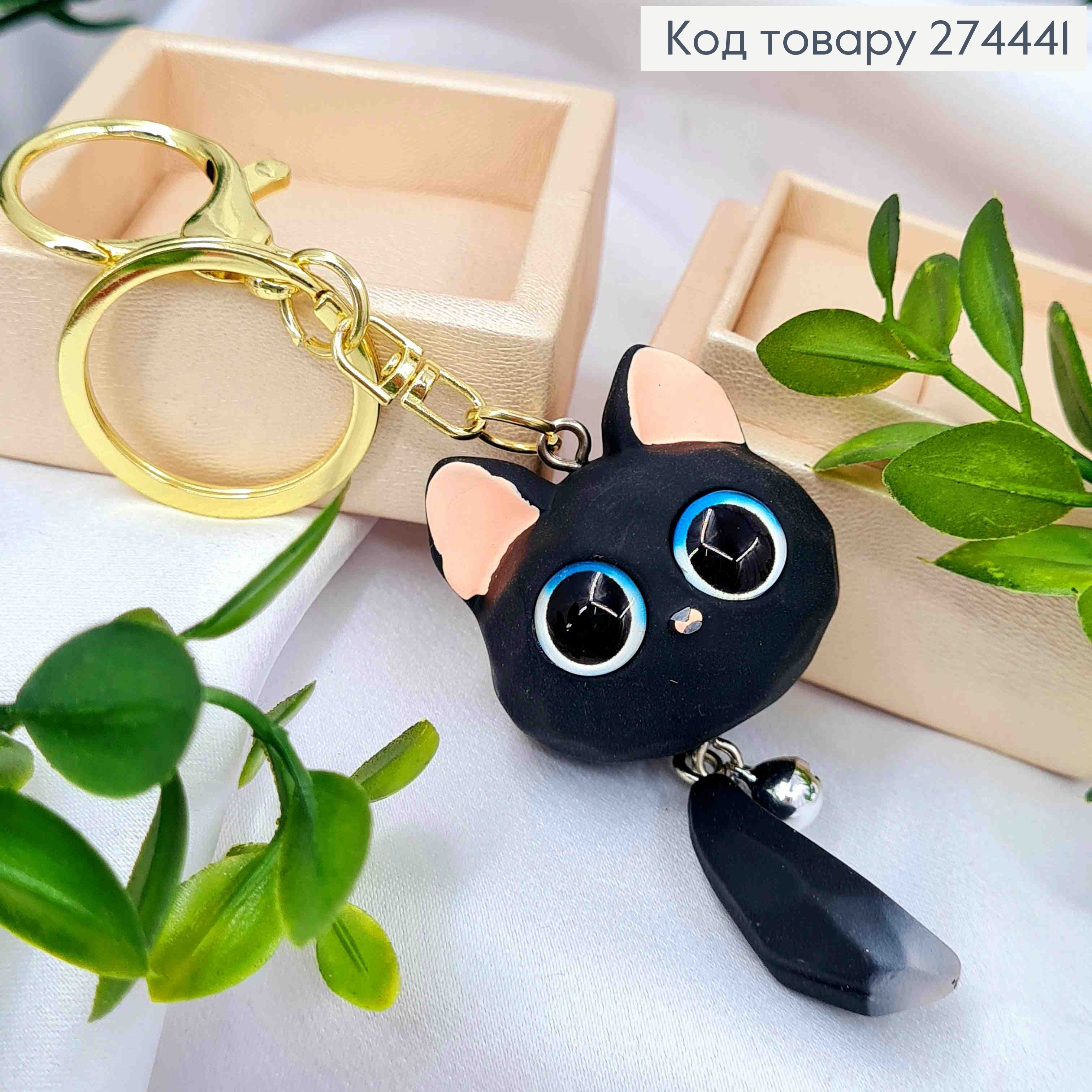 Брелок "Котик" с Колокольчиком, 7см, Черного цвета, на карабине и кольце