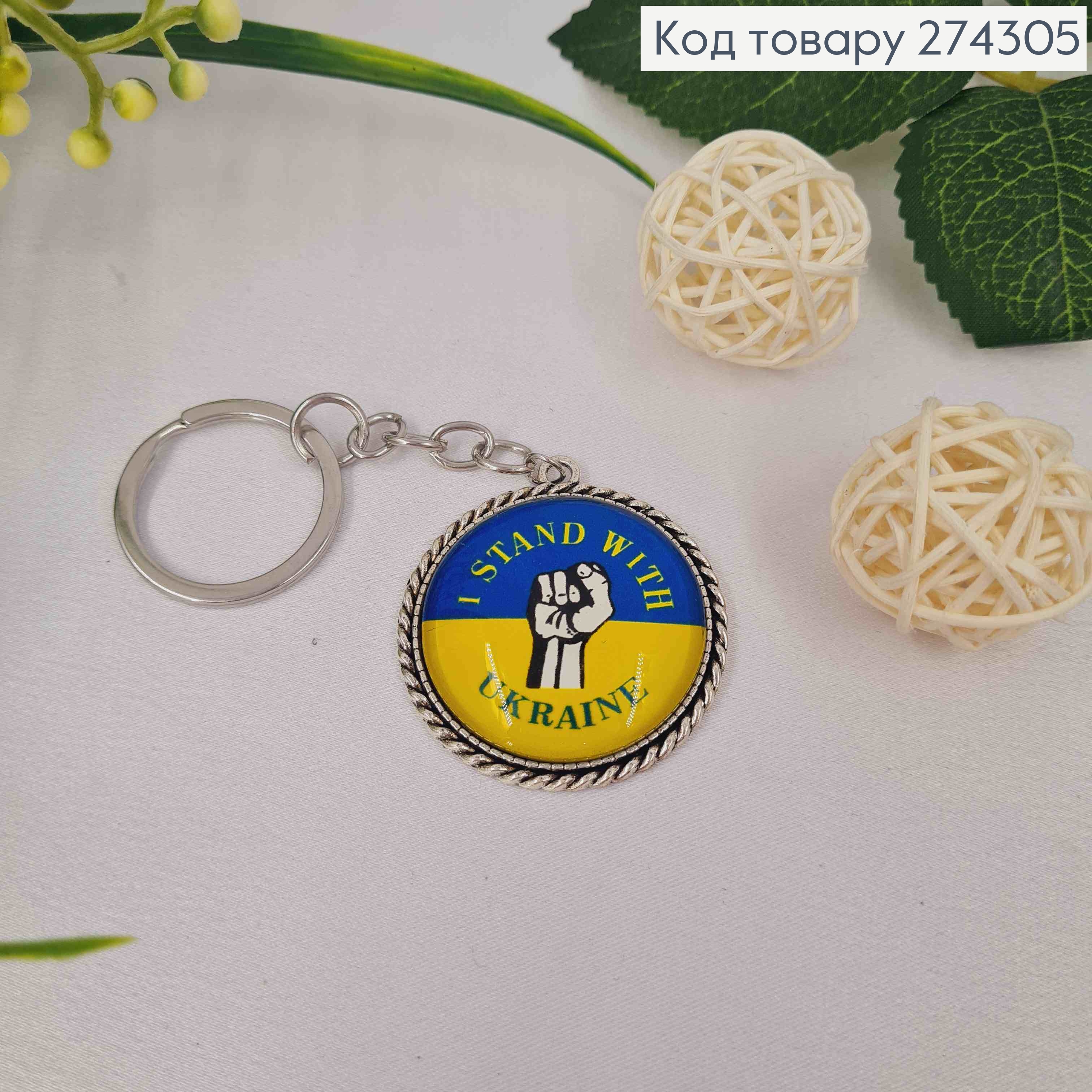 Брелок металл, с подвеской "I stand with UKRAINE", желто-синего цвета, 4см
