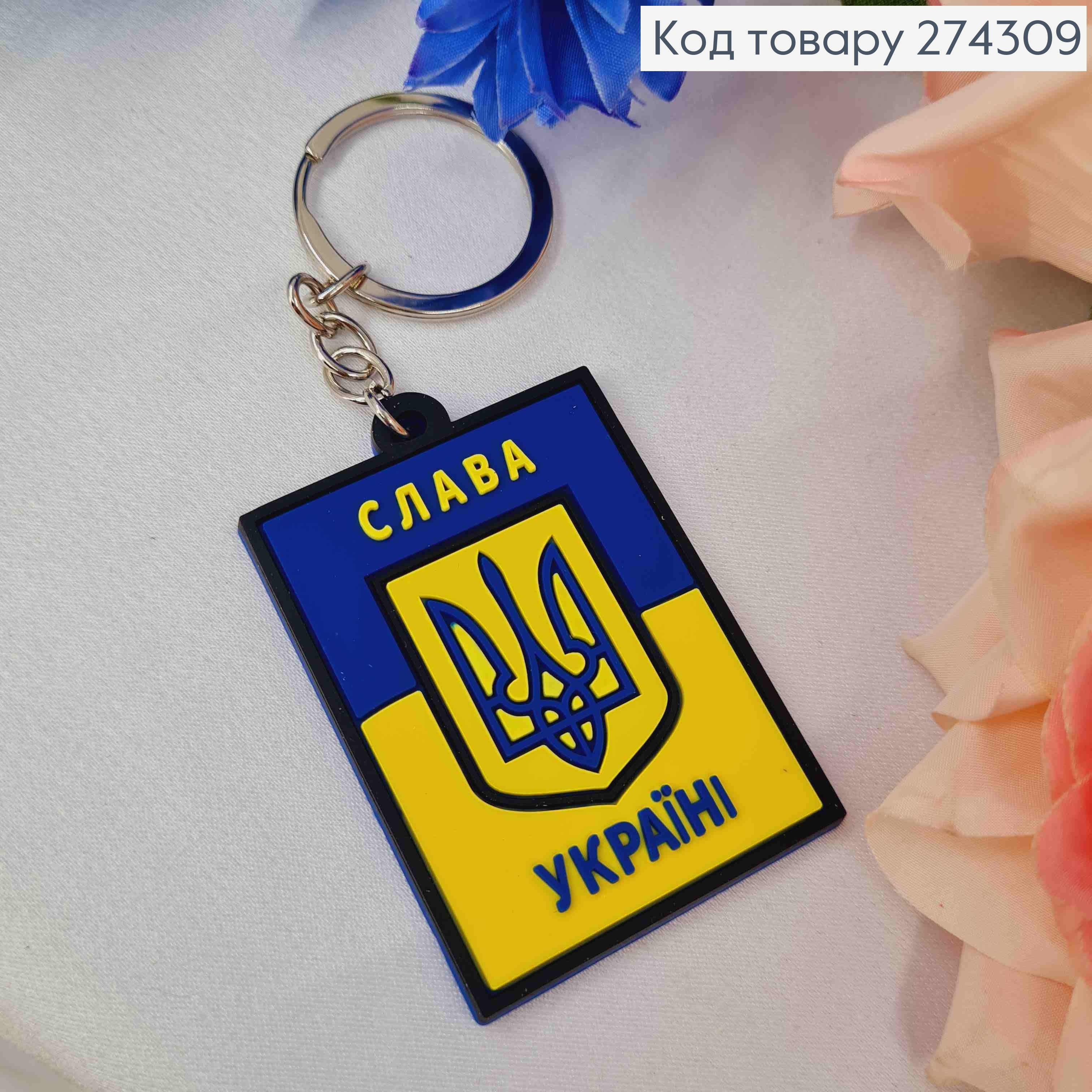 Брелок силиконовый, "Слава Украине" с Гербом, 5,5*4см, Желто-Синий, Украина.