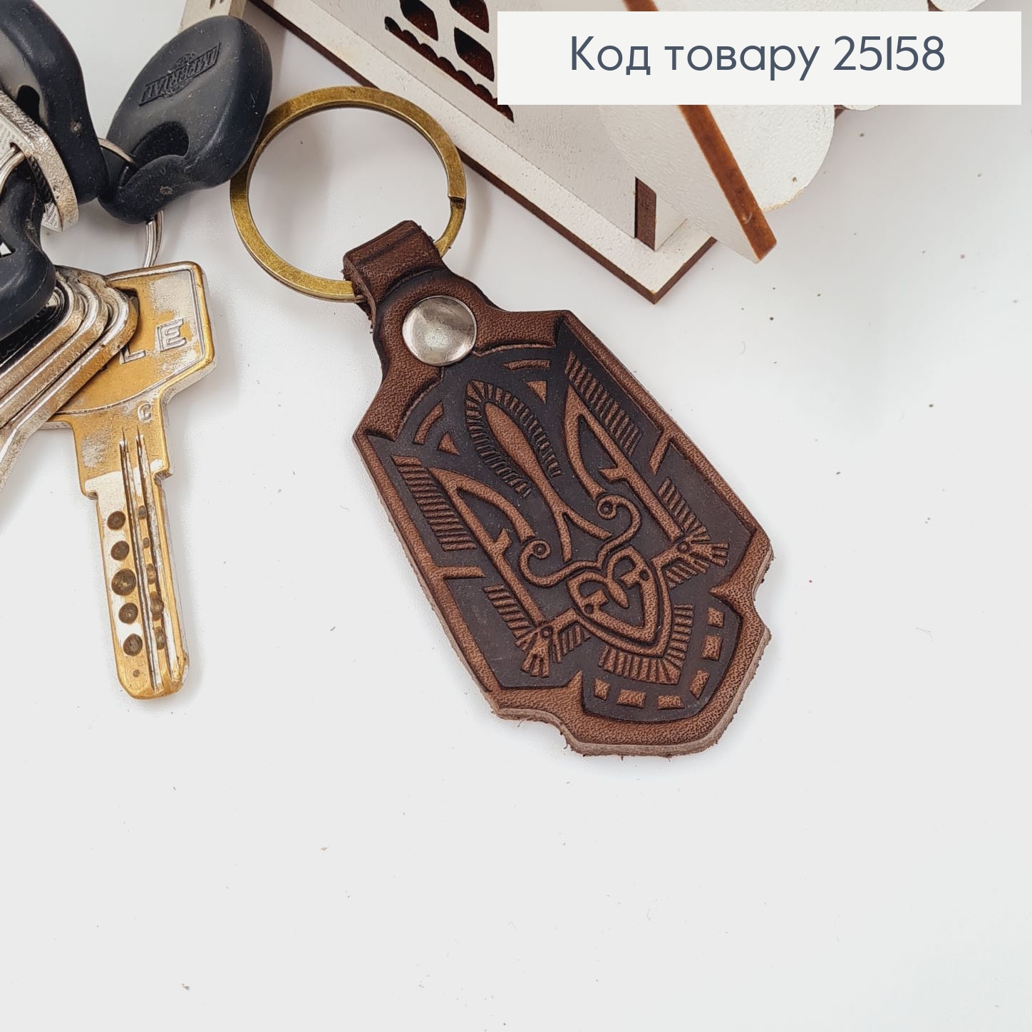 Брелок кожаный ГЕРБ (7,5*4см) тесненый, КОРИЧНЕВЫЙ,ручная работа, Украина