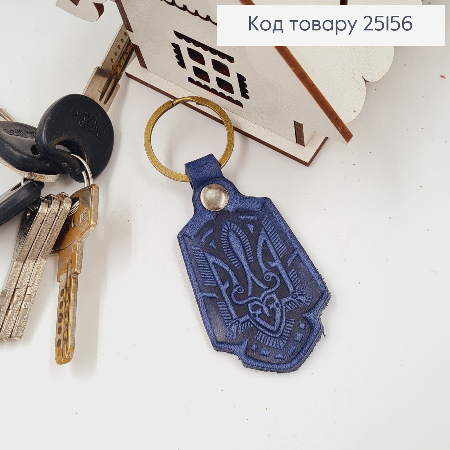 Брелок кожаный ГЕРБ (7,5*4см) тесненый, СИНИЙ,ручная работа, Украина