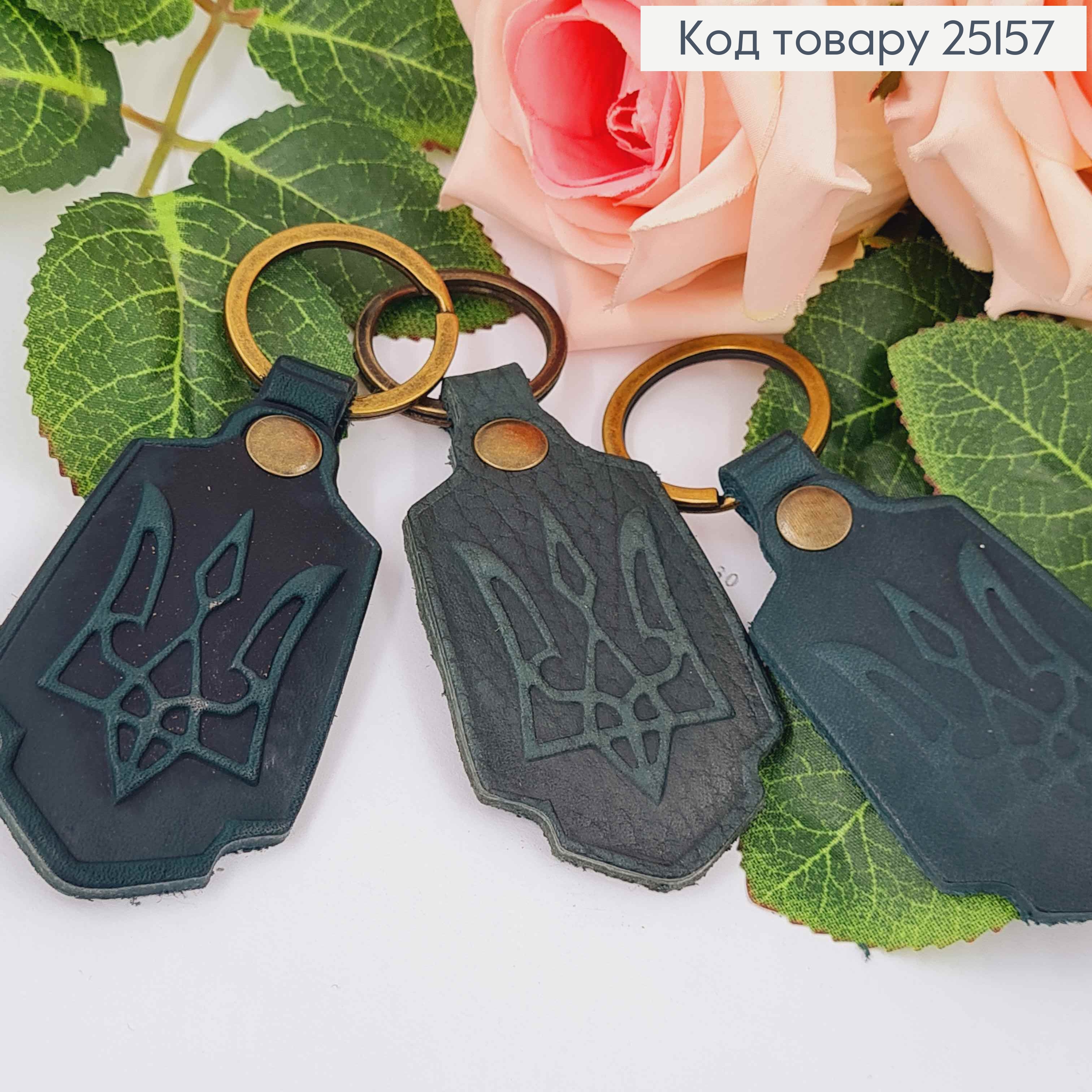 Брелок кожаный ГЕРБ (7,5*4см) тесненый, сине-ЗЕЛЕНЫЙ,ручная работа, Украина