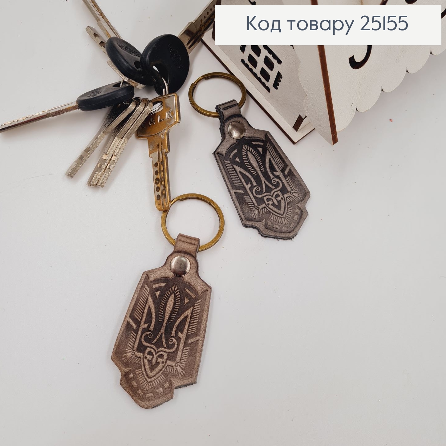Брелок кожаный ГЕРБ (7,5*4см) тесненый, СЕРЫЙ, ручная работа, Украина