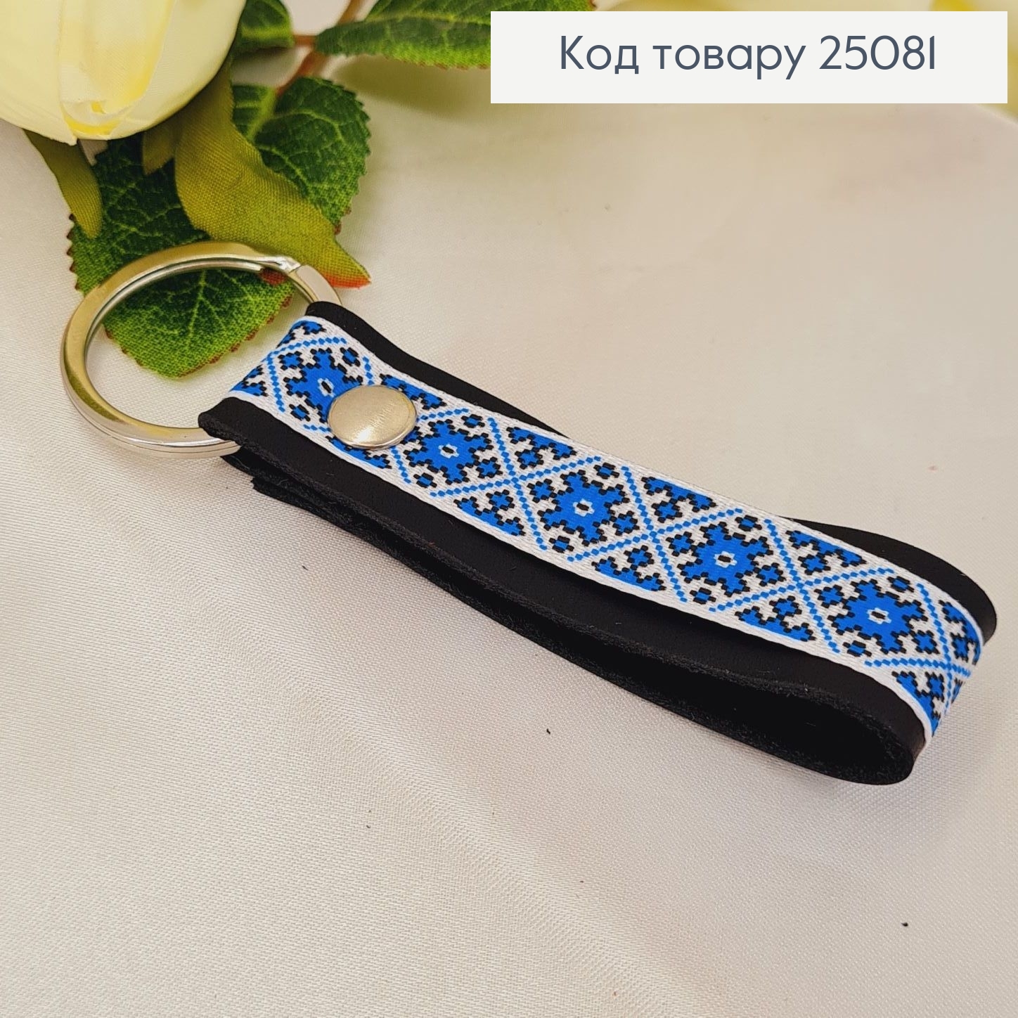 Брелок кожаный Вишиванка, синий орнамент, ручная работа, Украина