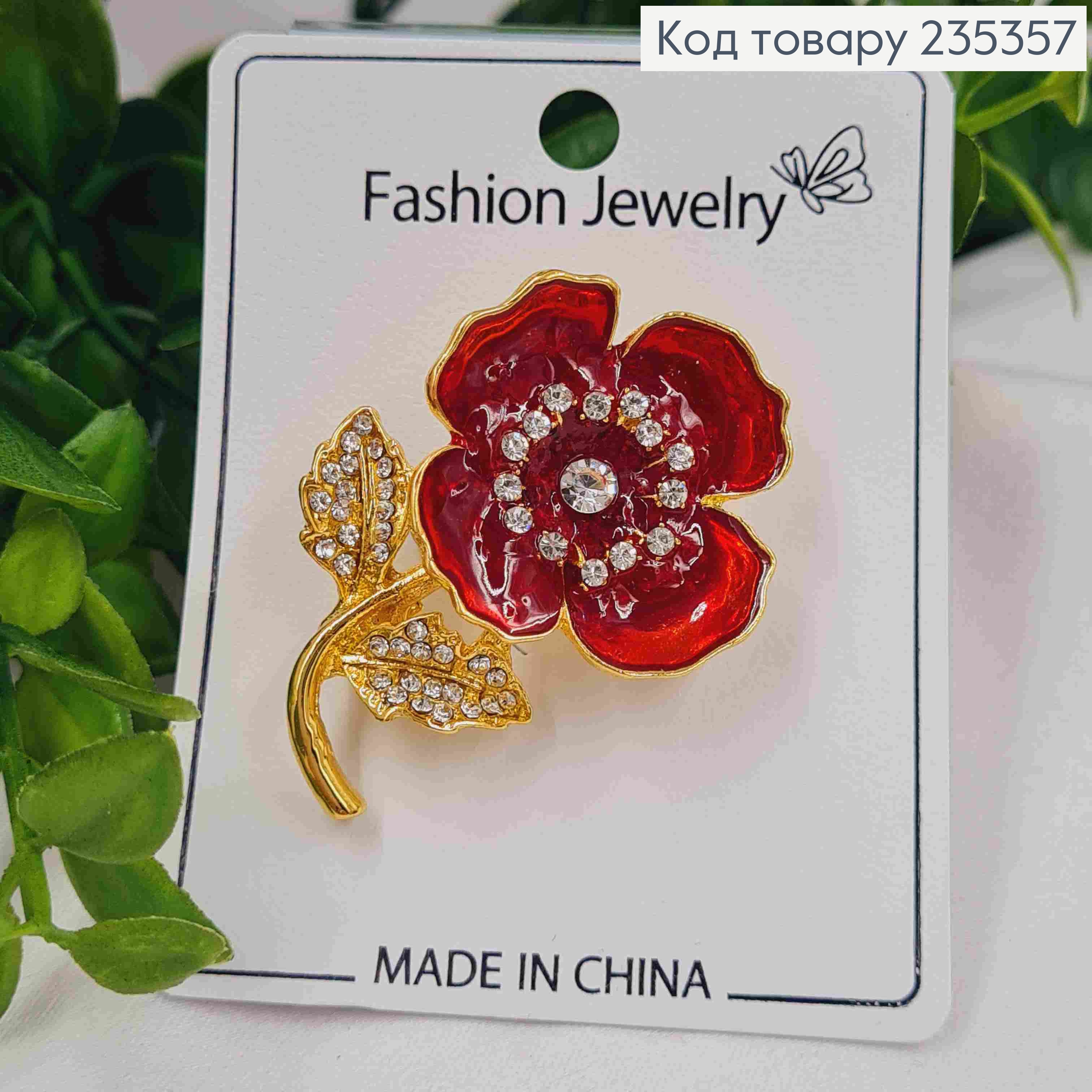 Брошь, "Красный Цветок" с камешками, размер 4,5см, золотого цвета