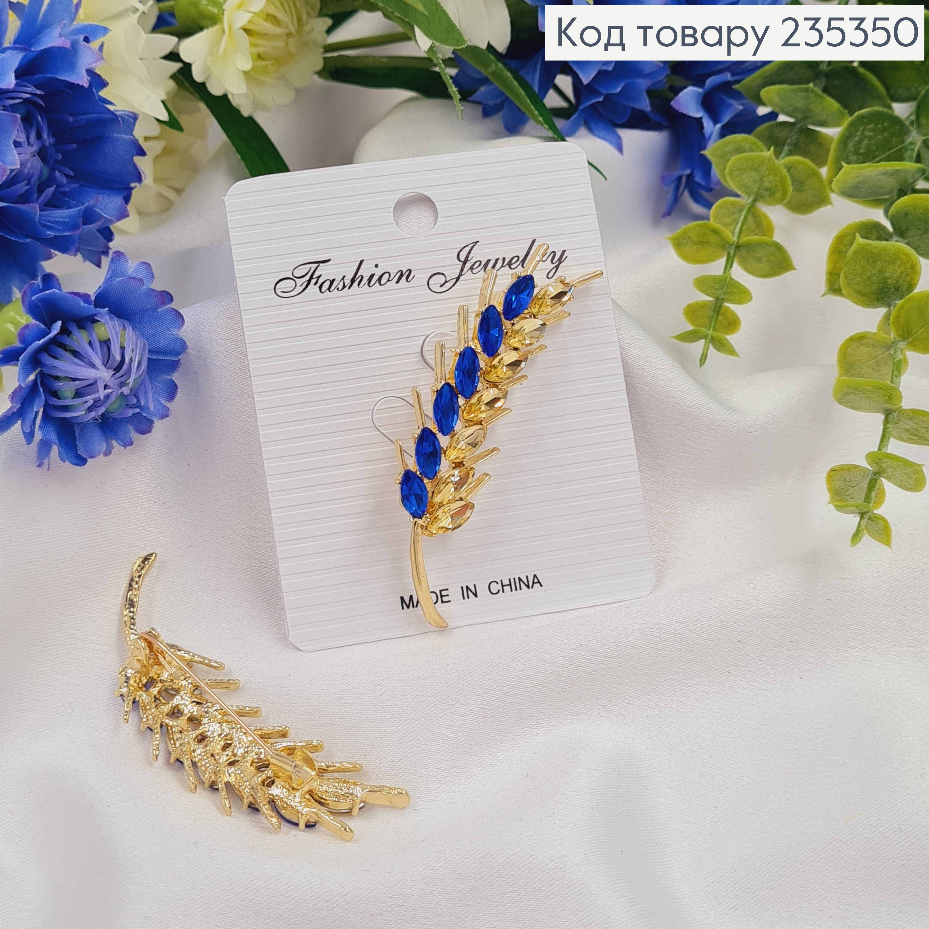 Брошь КОЛОСОК (5,5см)ЖЕЛТО-СИНИЙ, в камнях с тремя цепочками в камнях (9,5см) 235425 фото