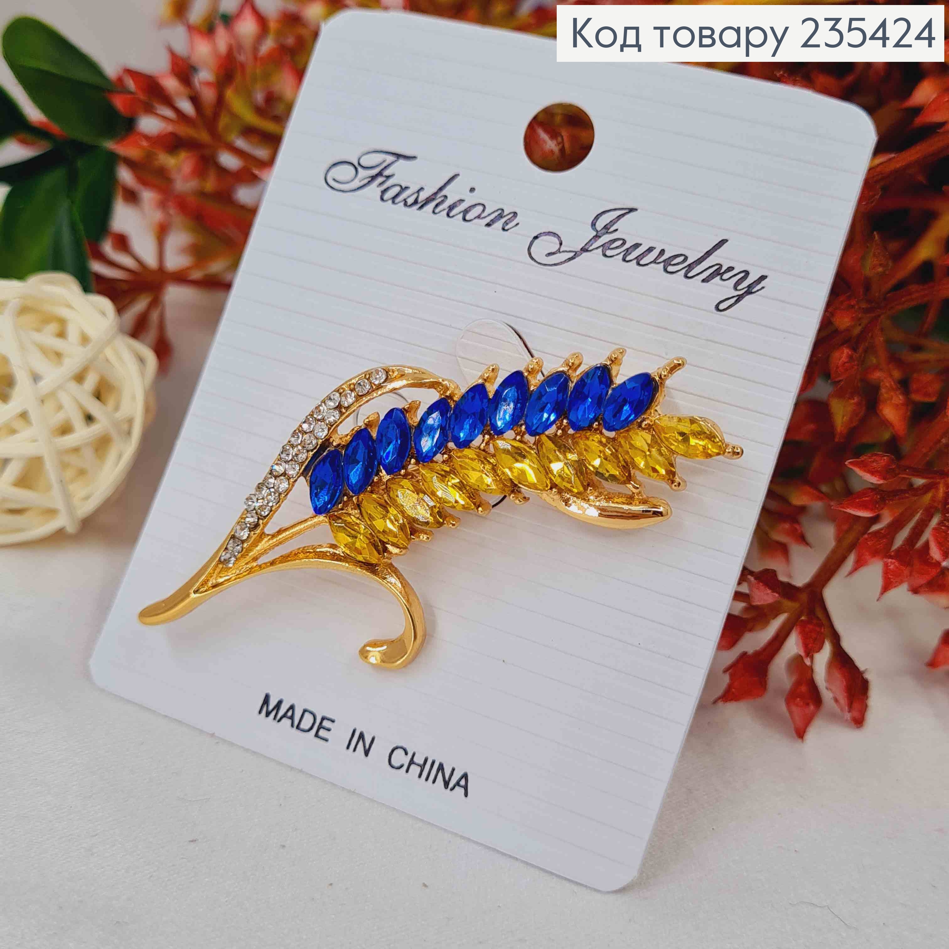 Брошь КОЛОСОК (5,5см)ЖЕЛТО-СИНИЙ, в камнях