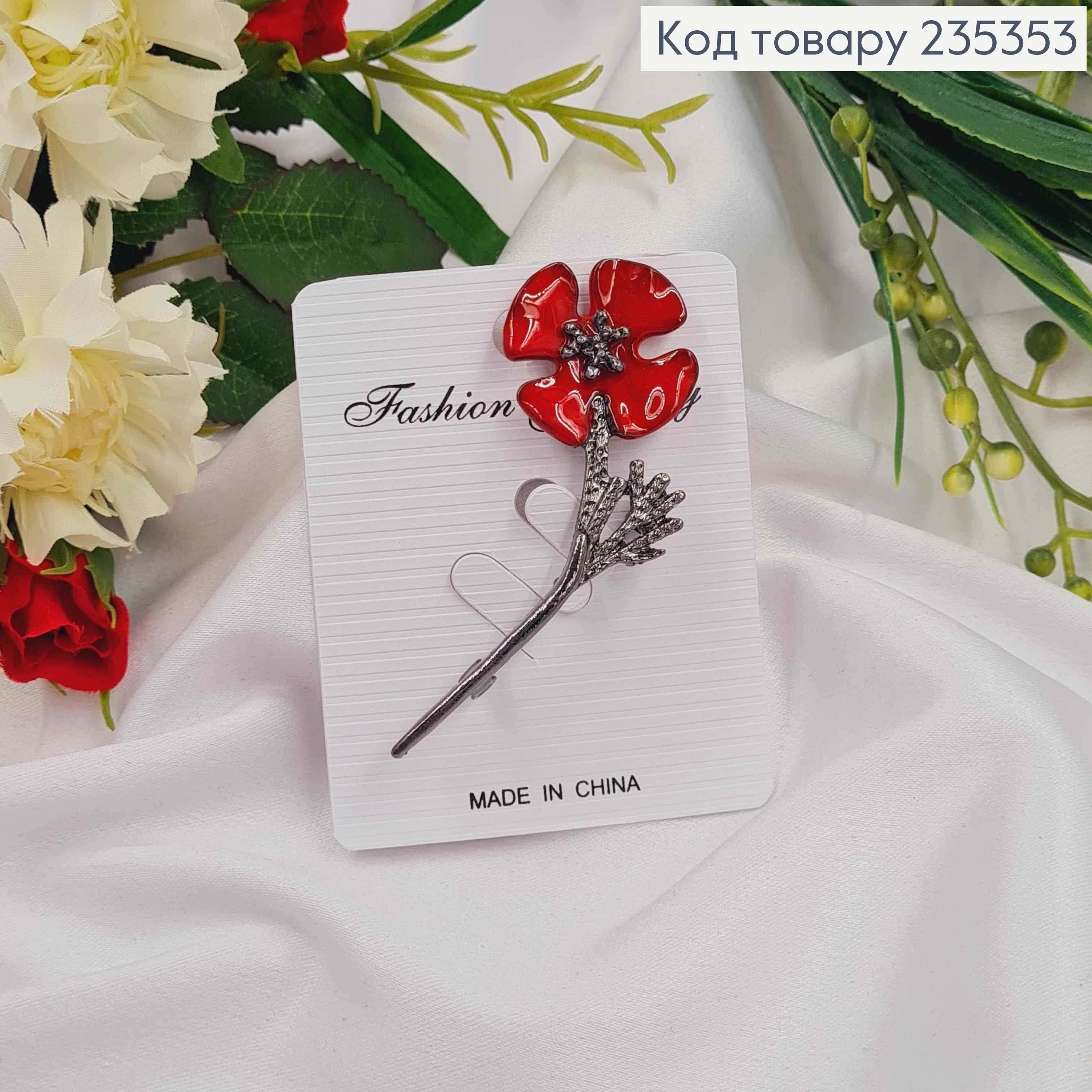Брошь "Цветок Красный Мак", размер 7см, серебряного цвета