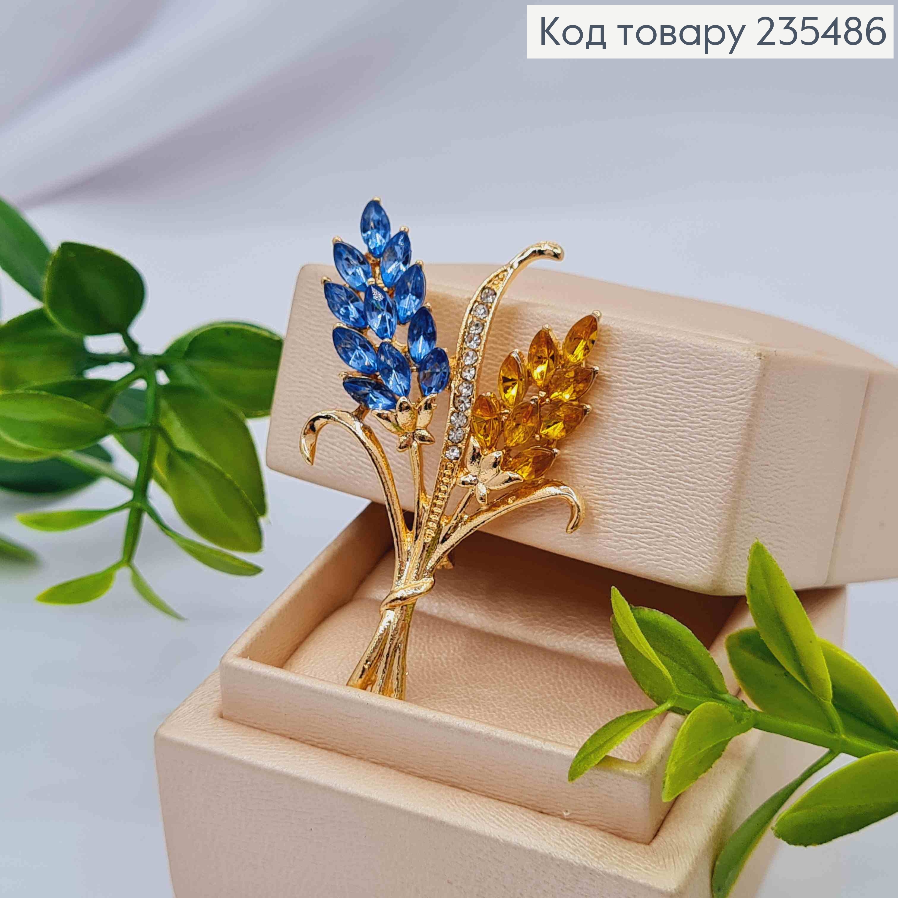 Брошь КОЛОСОК (5,5см)ЖЕЛТО-СИНИЙ, в камнях с тремя цепочками в камнях (9,5см) 235425 фото