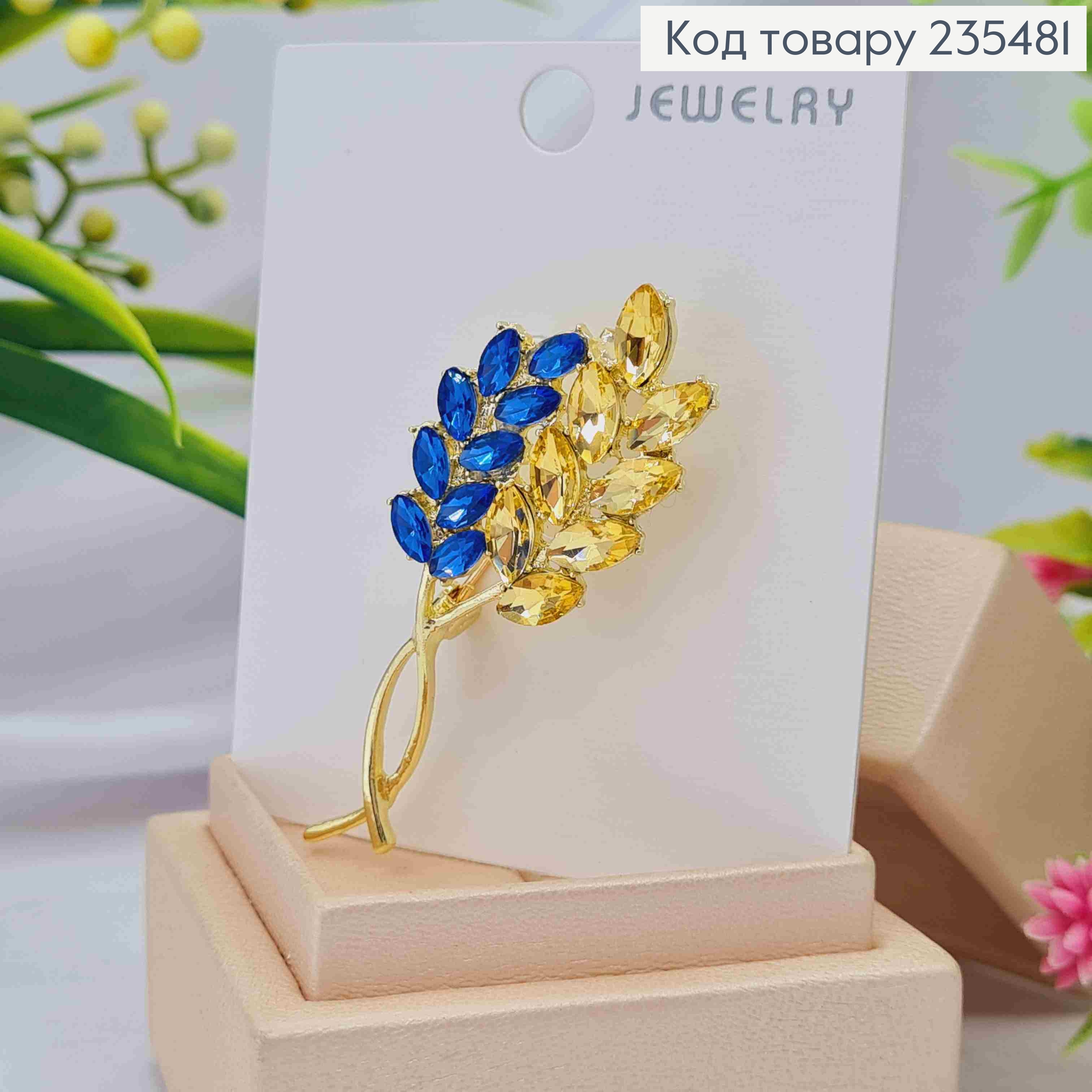 Брошь КОЛОСОК (5,5см)ЖЕЛТО-СИНИЙ, в камнях с тремя цепочками в камнях (9,5см) 235425 фото