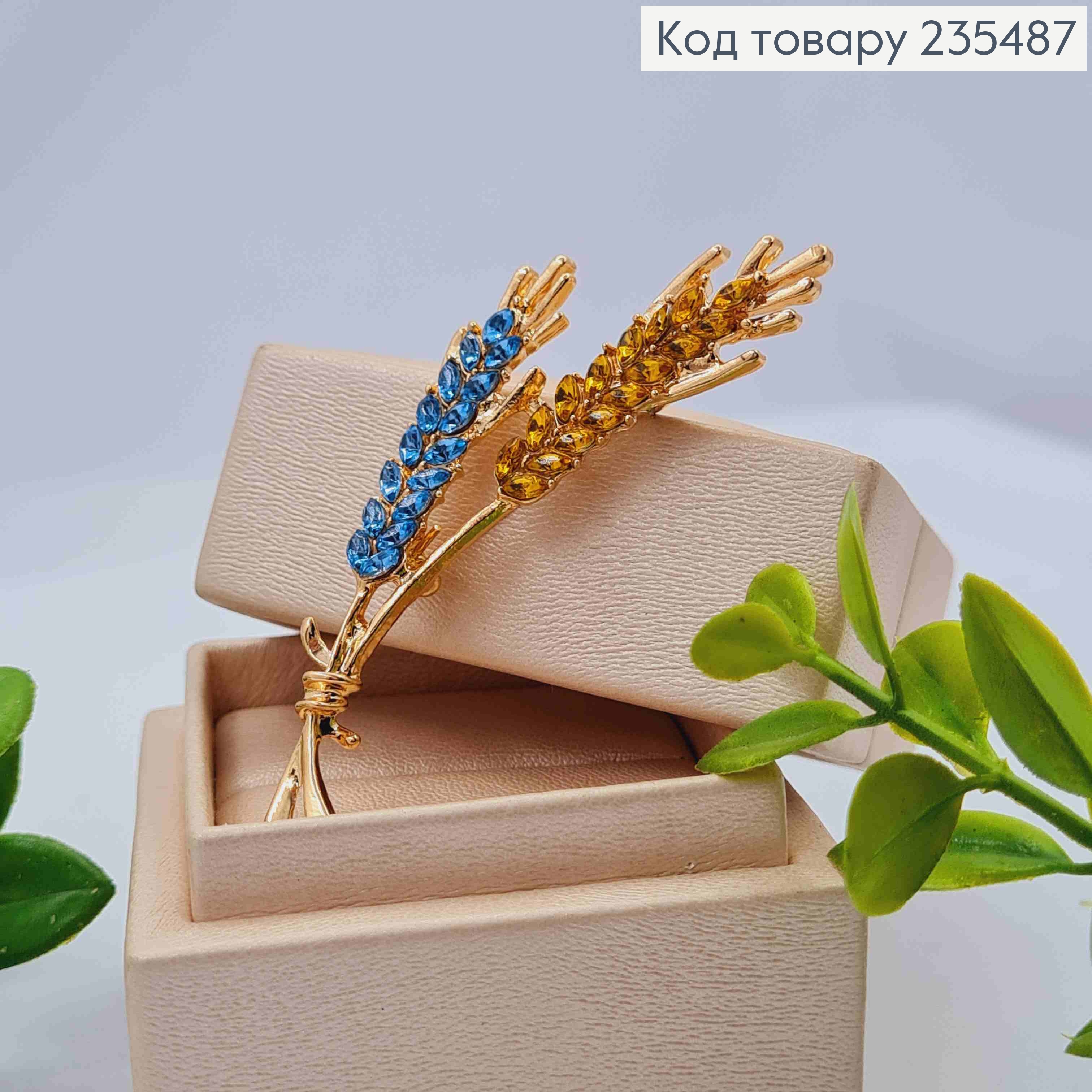 Брошь КОЛОСОК (5,5см)ЖЕЛТО-СИНИЙ, в камнях с тремя цепочками в камнях (9,5см) 235425 фото