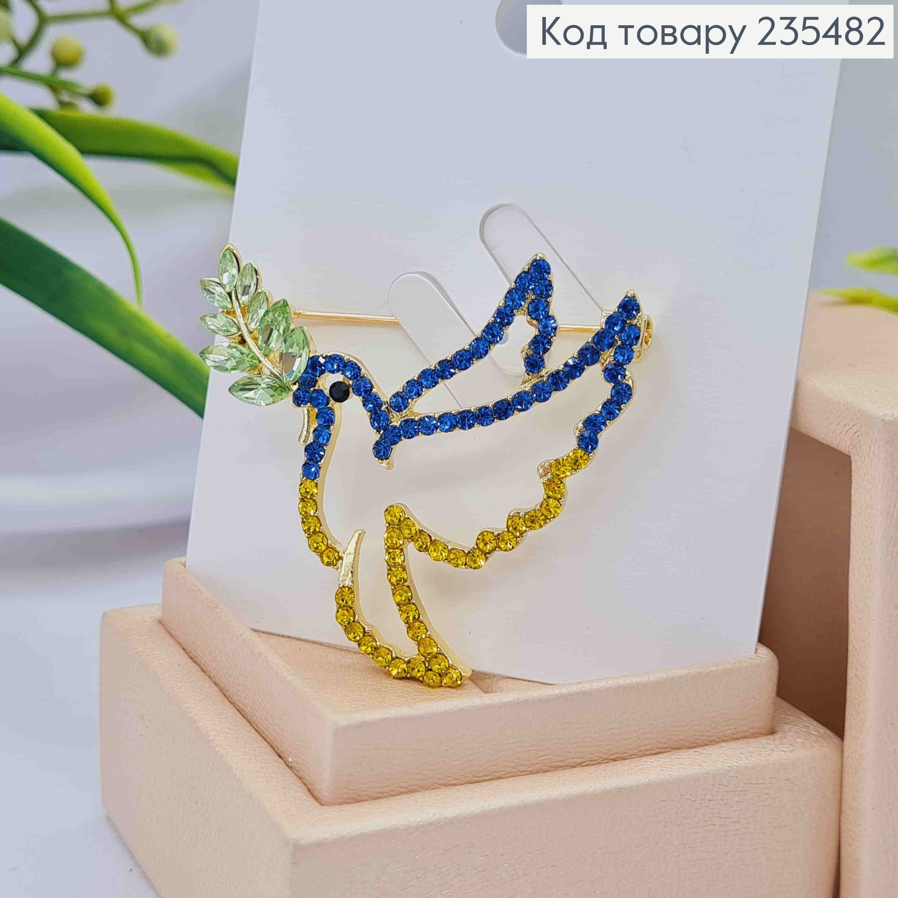Брошь металл, "Голубь" с Сине-Желтыми камешками, 4*5м.