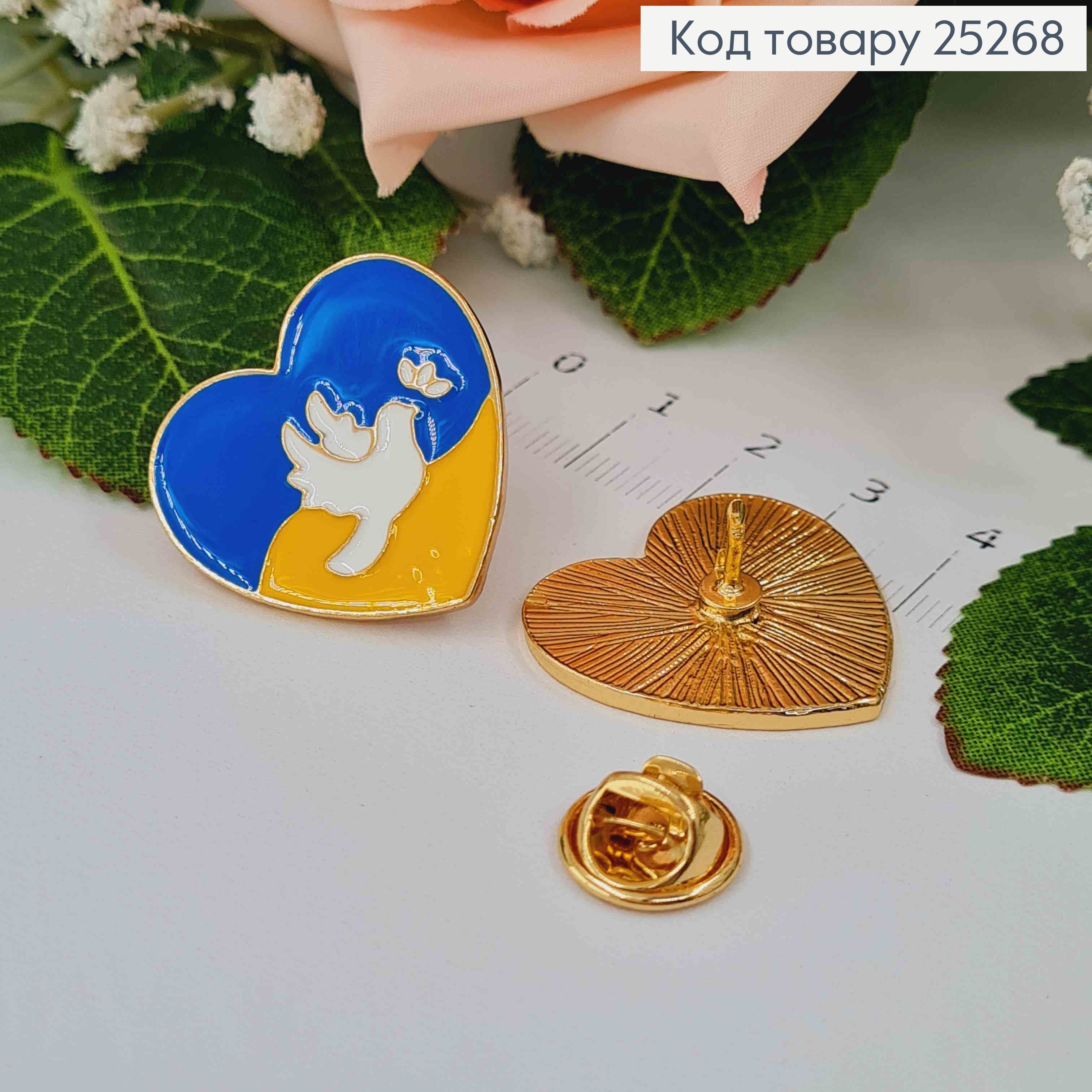 Брошь металл, Сине-Желтая, Сердце с голубем мира, 2,5см
