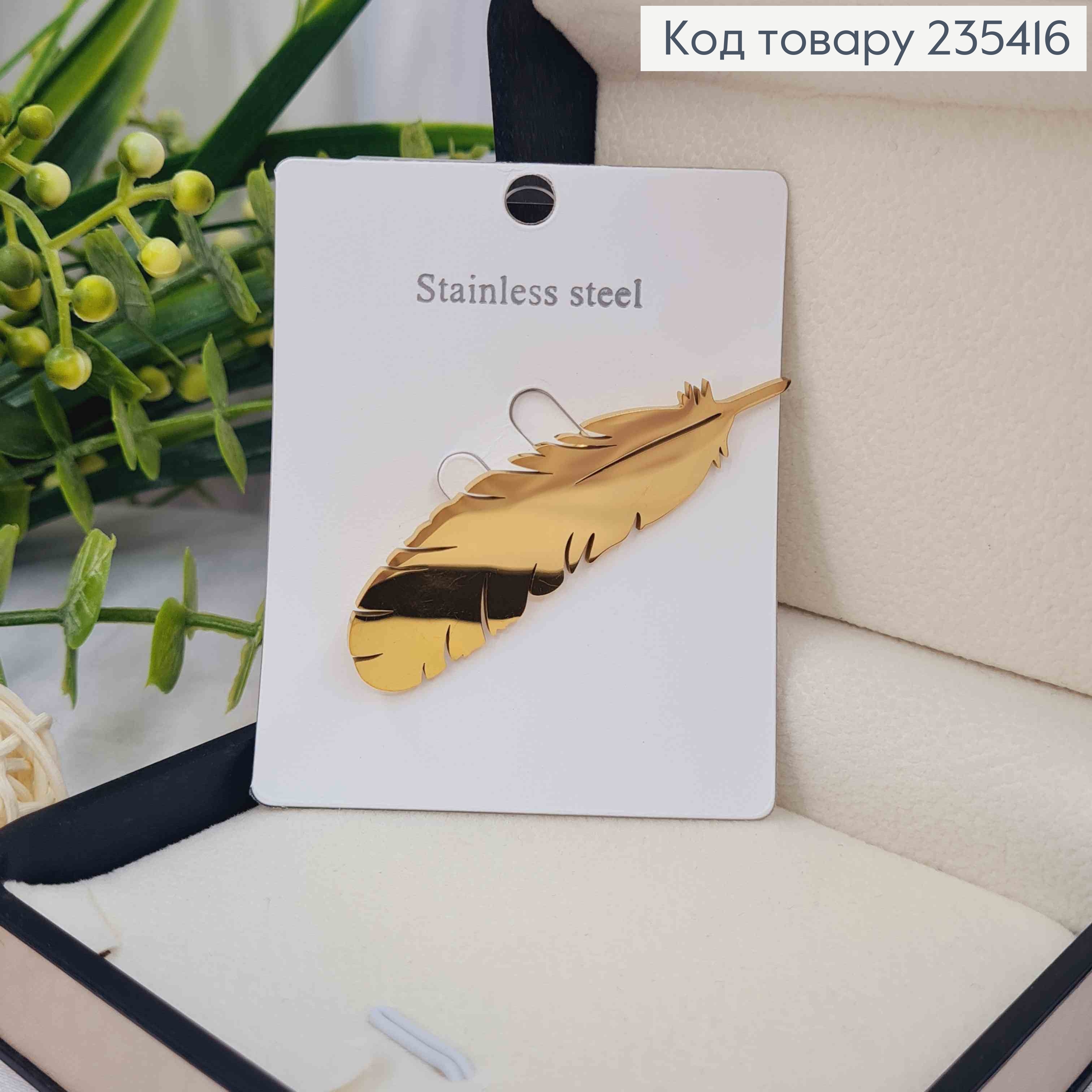 Брошь, "Перья павы", 5,8см, Золотого цвета