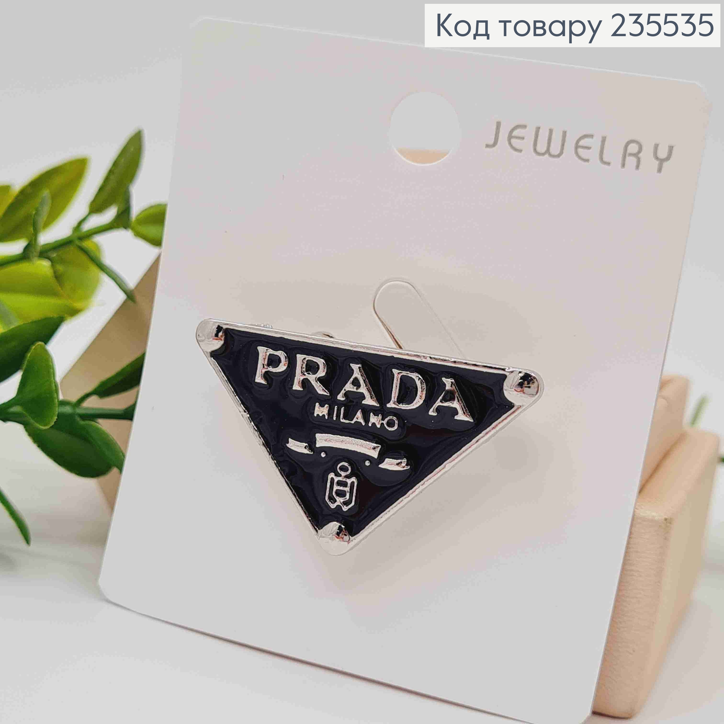 Брошка "PRADA" з Чорною емалью, 4*2,4см, Срібного кольору