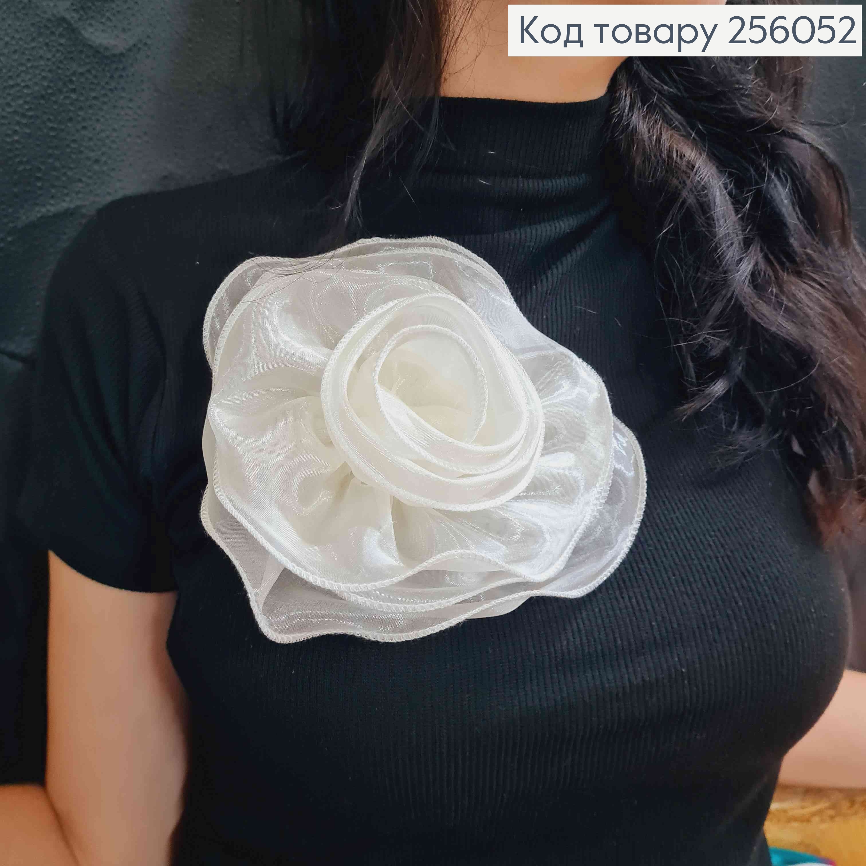 Брошь-заколка, объемная роза цвета АИВОРИ, 16см, ткань органза кристаллин, ручная работа