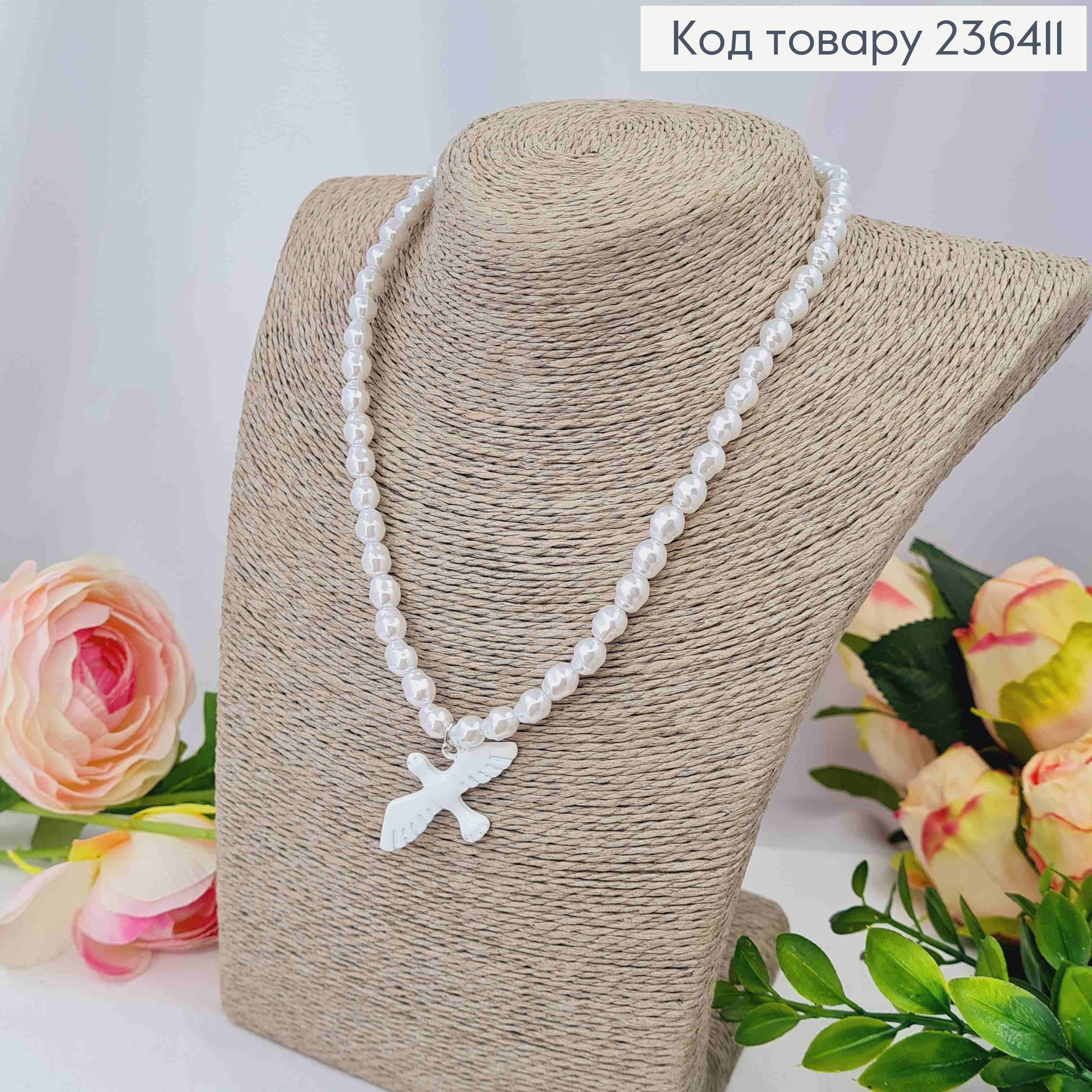 Бусы Перламутрового цвета с подвеской "Горлица" (3см), длина 42+4см 236410 фото
