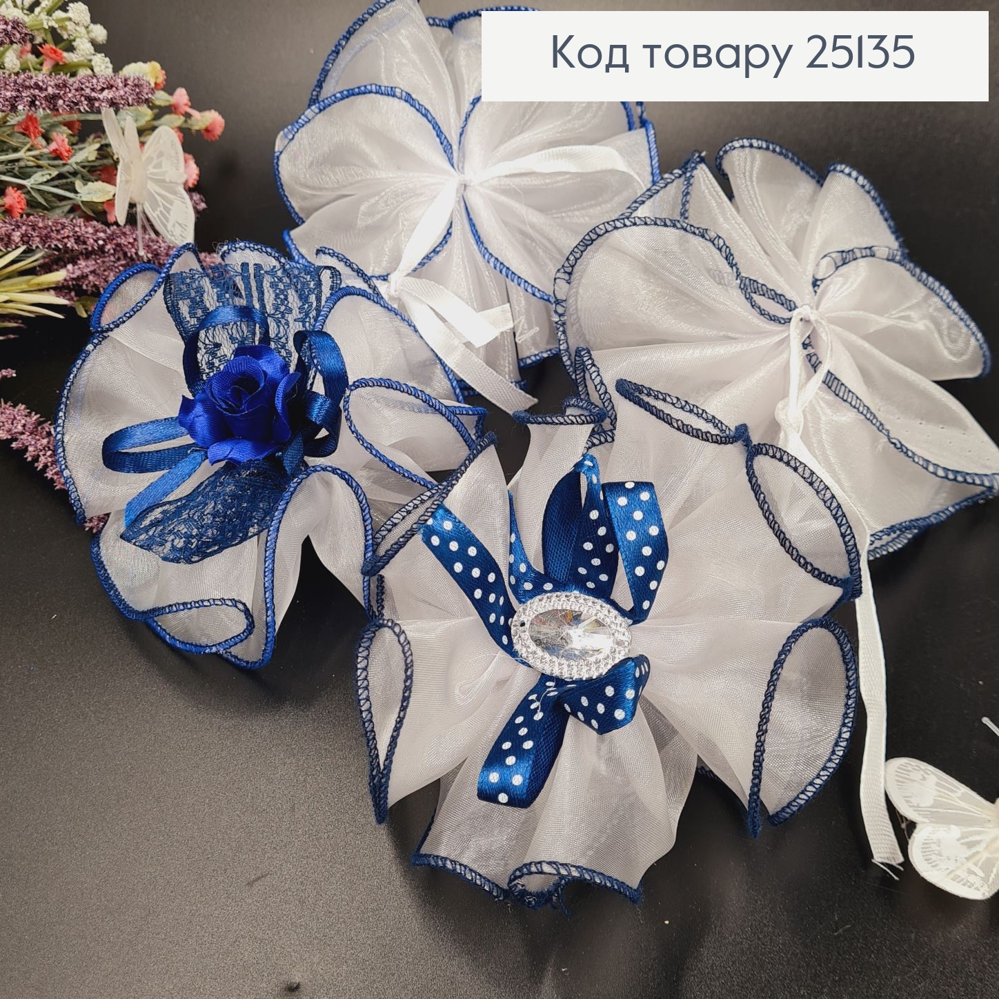 Резинка Бант цветочек в голубом орнаменте с цветочками по центру, ручная робота Украина 276058 фото