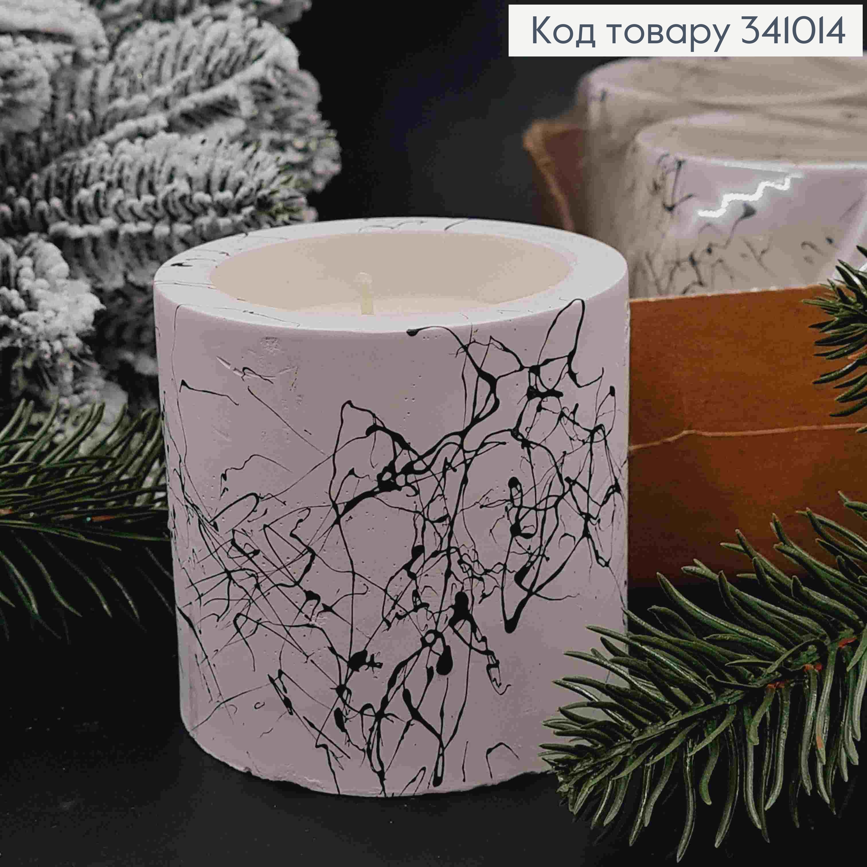 Свеча стакан (гипс), Белого цвета с Черной паутинкой, 65*65*65мм, 8ч/горение, YUNIOR CANDALE 341019 фото