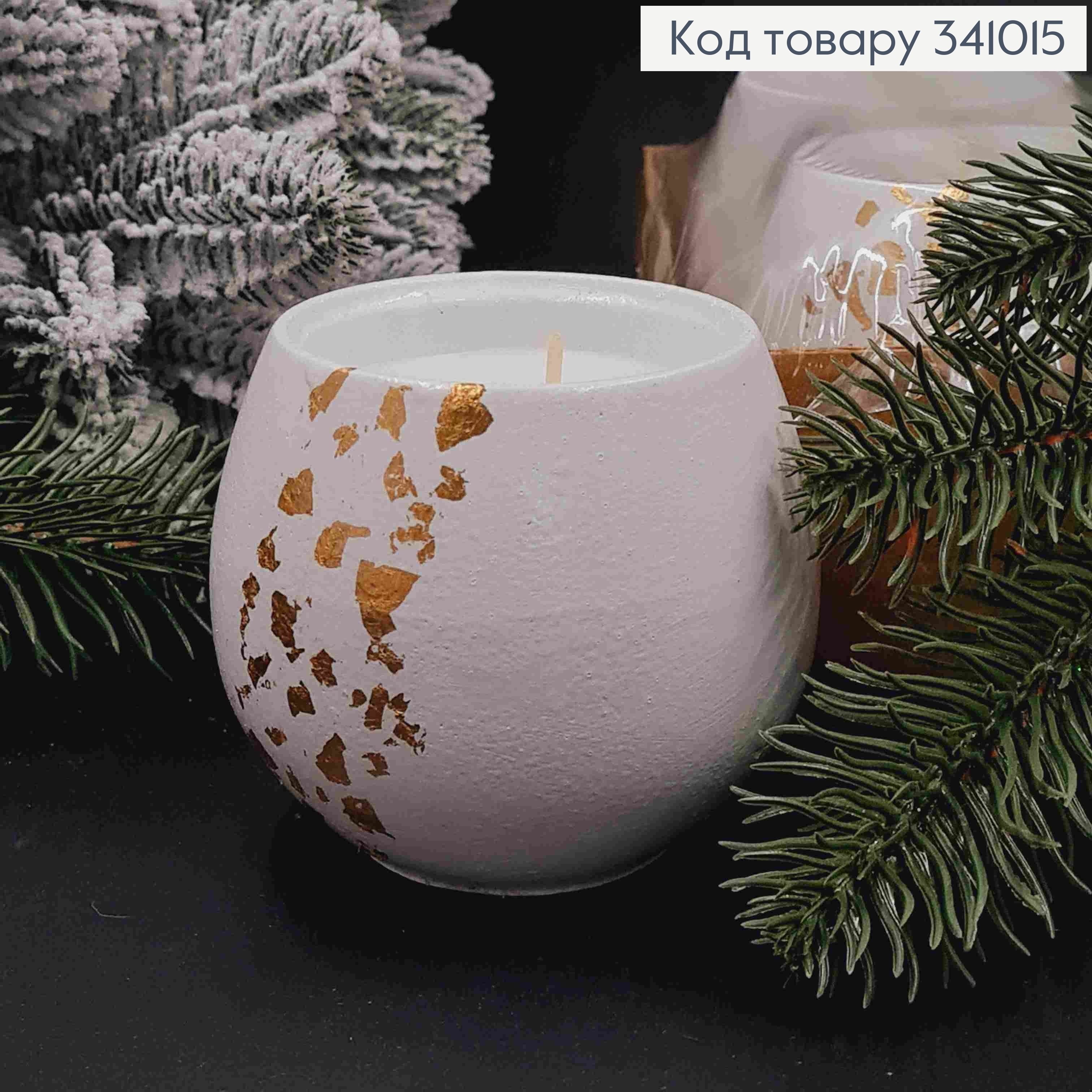 Свеча стакан (гипс), Белого цвета с Золотом, 90*90*100мм, 24ч/горение, YUNIOR CANDALE 341017 фото