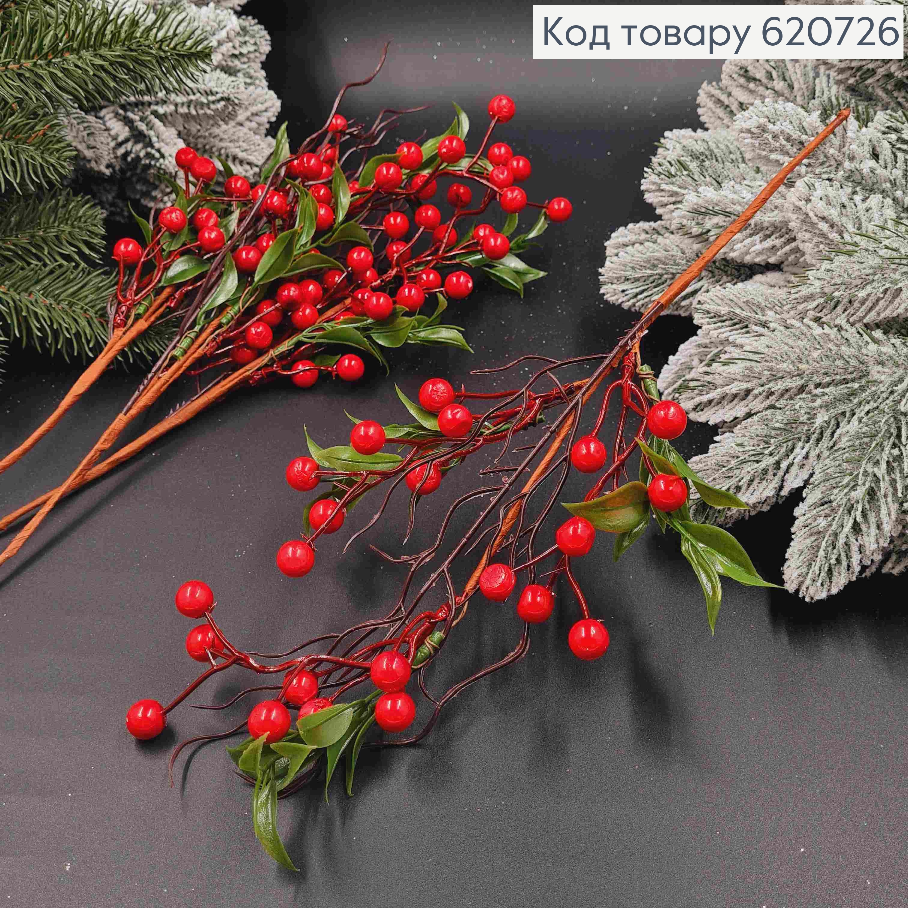 Декор Новогодний (12шт/пучок), "Ягодки Рябины", КРАСНОГО цвета, 1,5см+6,5см 620700 фото