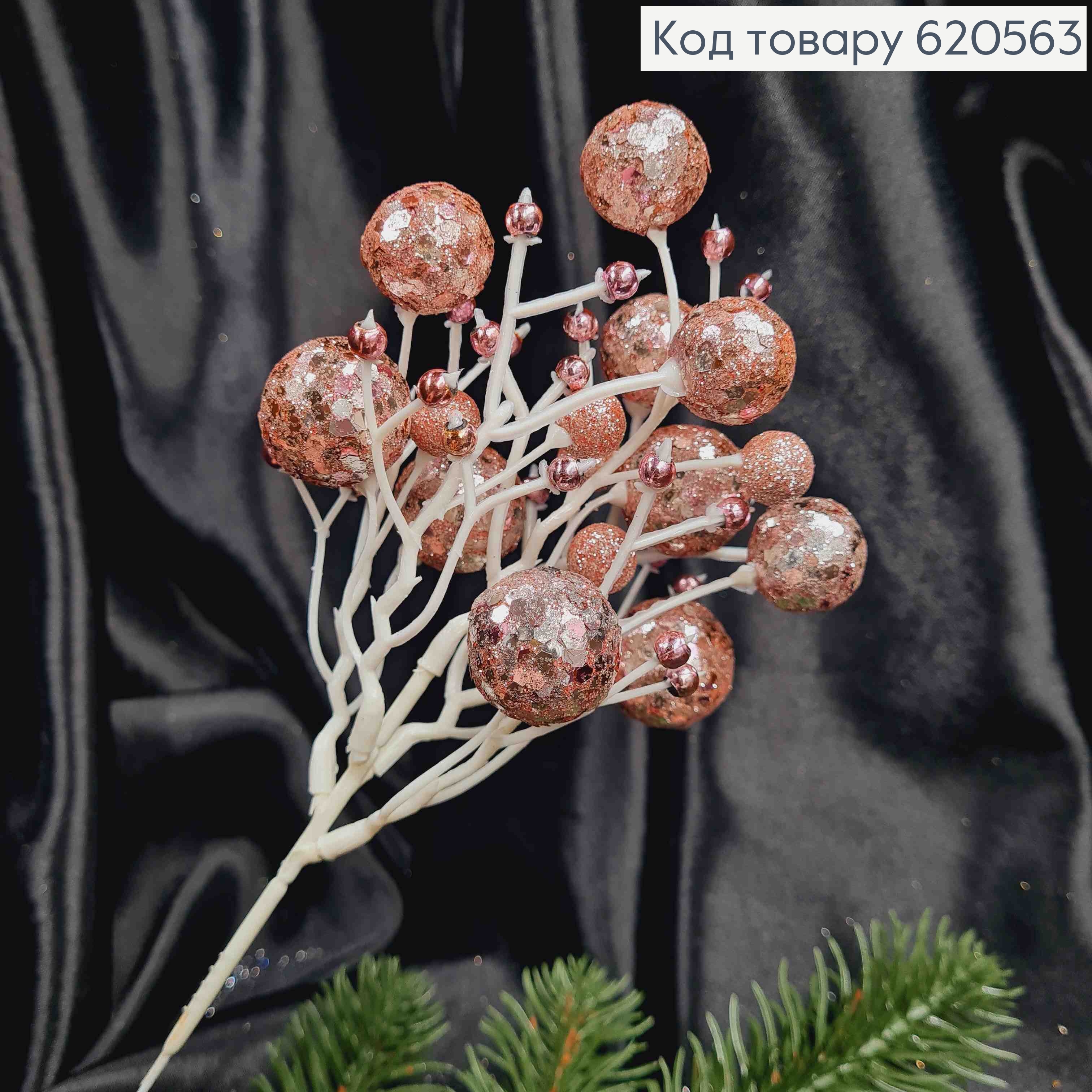 Декор Новогодний, веточка с шариками, Розового цвета, 23см