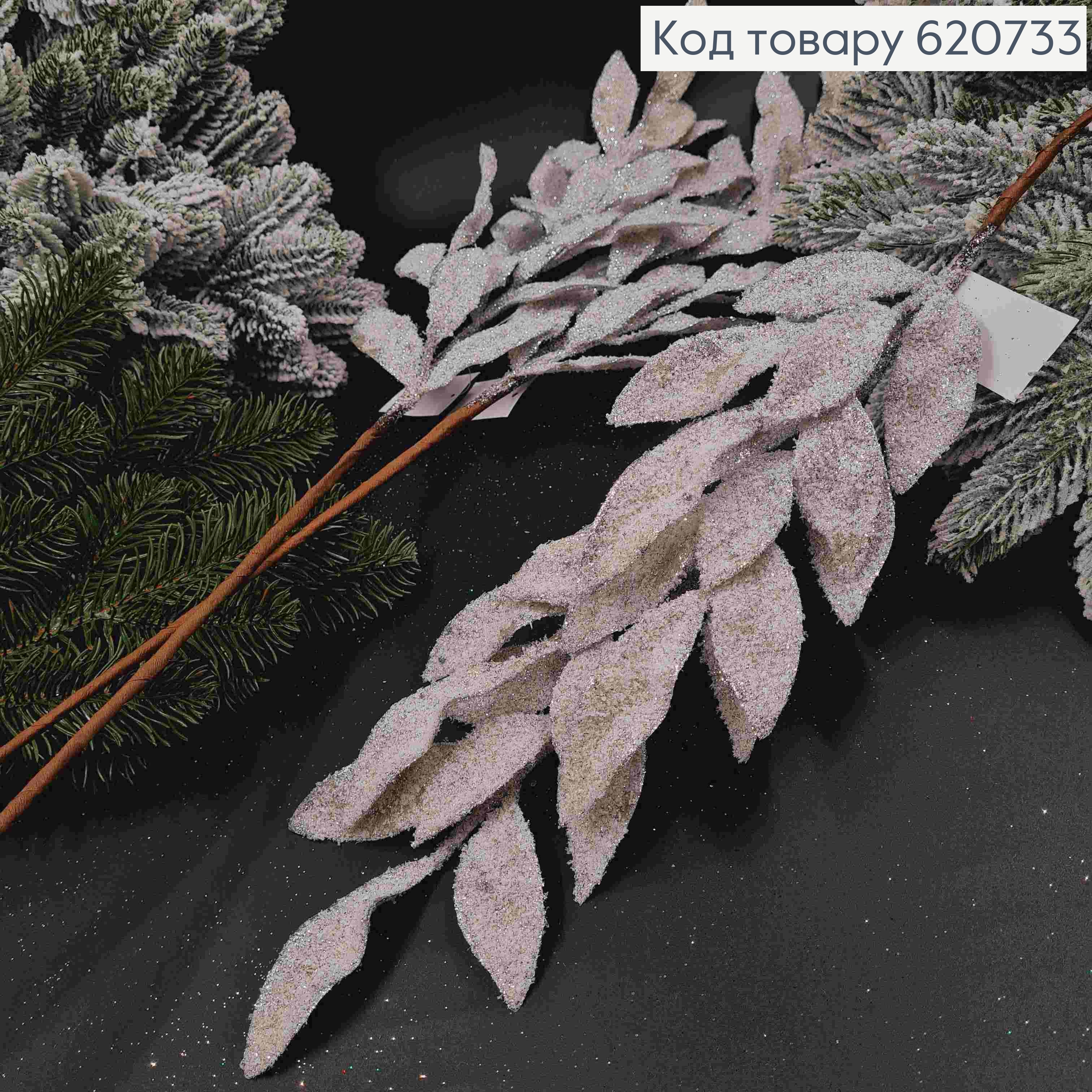 Декор Новорічний, гілочка Туї,СЕРЕБРЯНОГО цвета, 44см 620717 фото