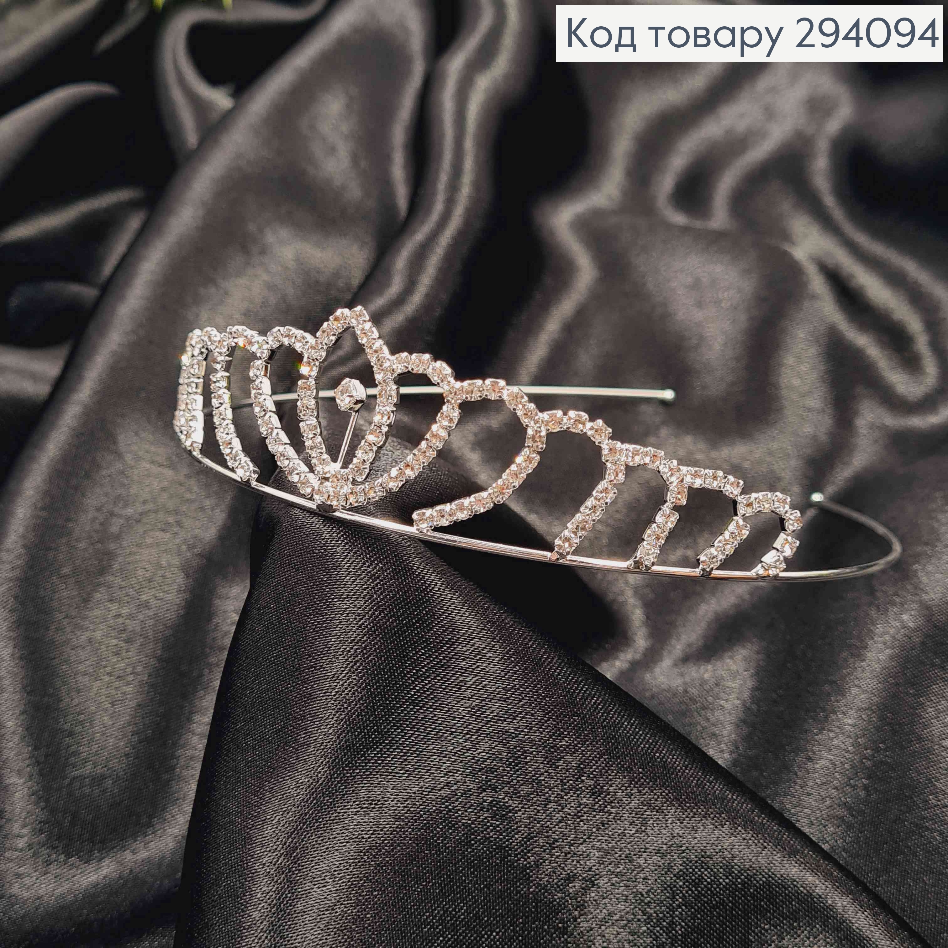 Тиара под серебро, "Флоренцо" с Блестящими камешками, 4см самая высокая точка 294163 фото