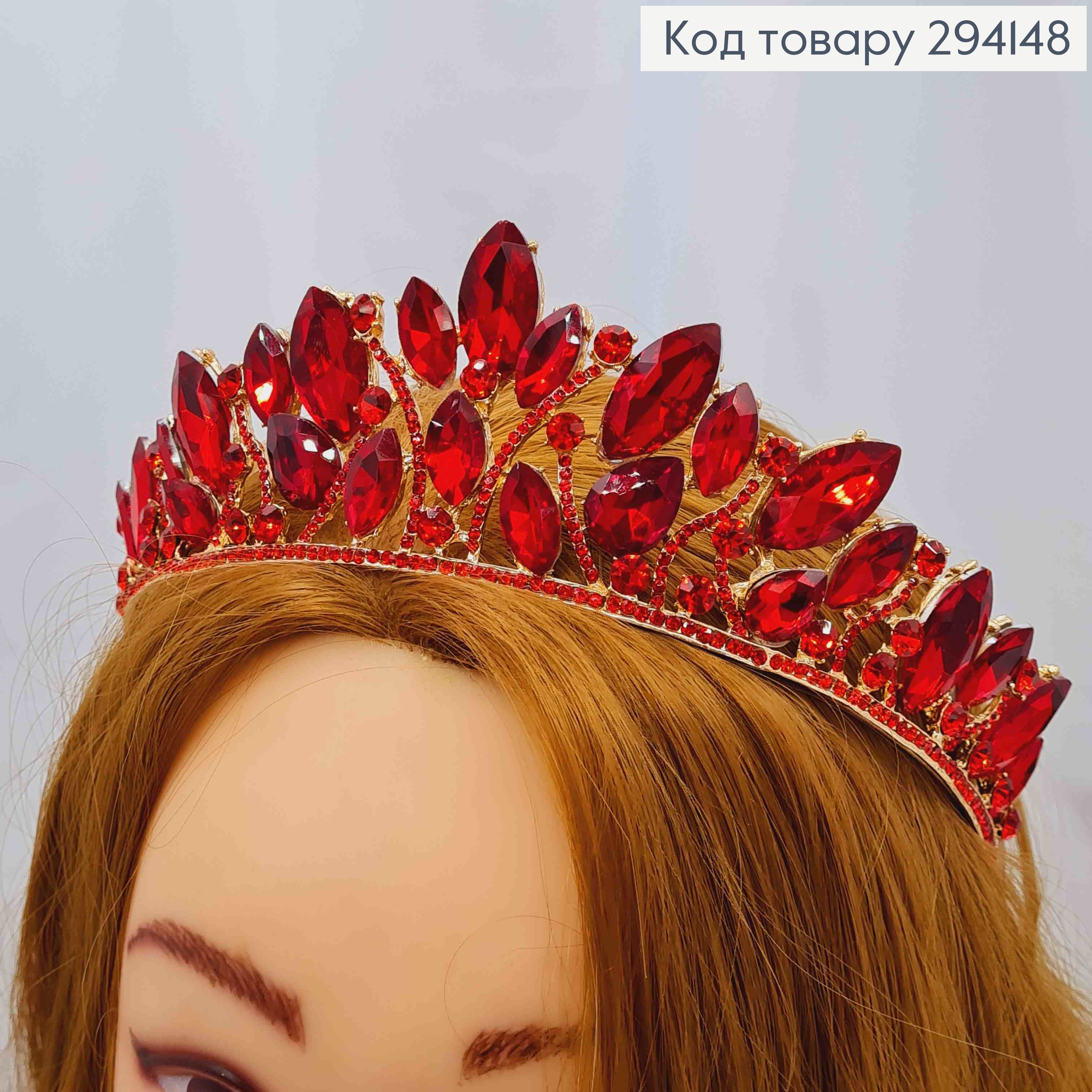 Диадема "Великая" под золото, с Красными блестящими камешками, 6см наивысшая точка 294165 фото