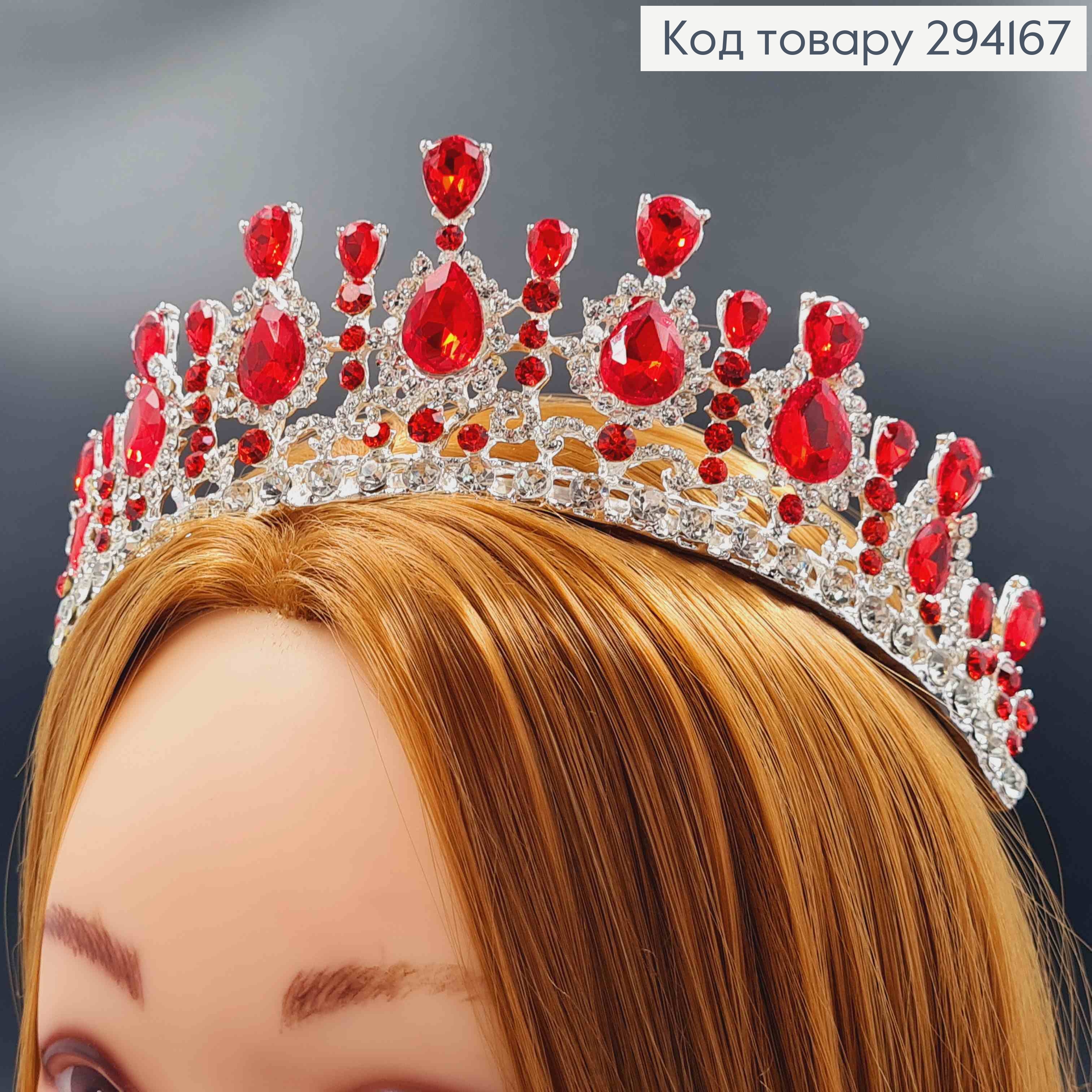 Диадема "Великая" под серебро, с Красными блестящими камешками, 6см наивысшая точка