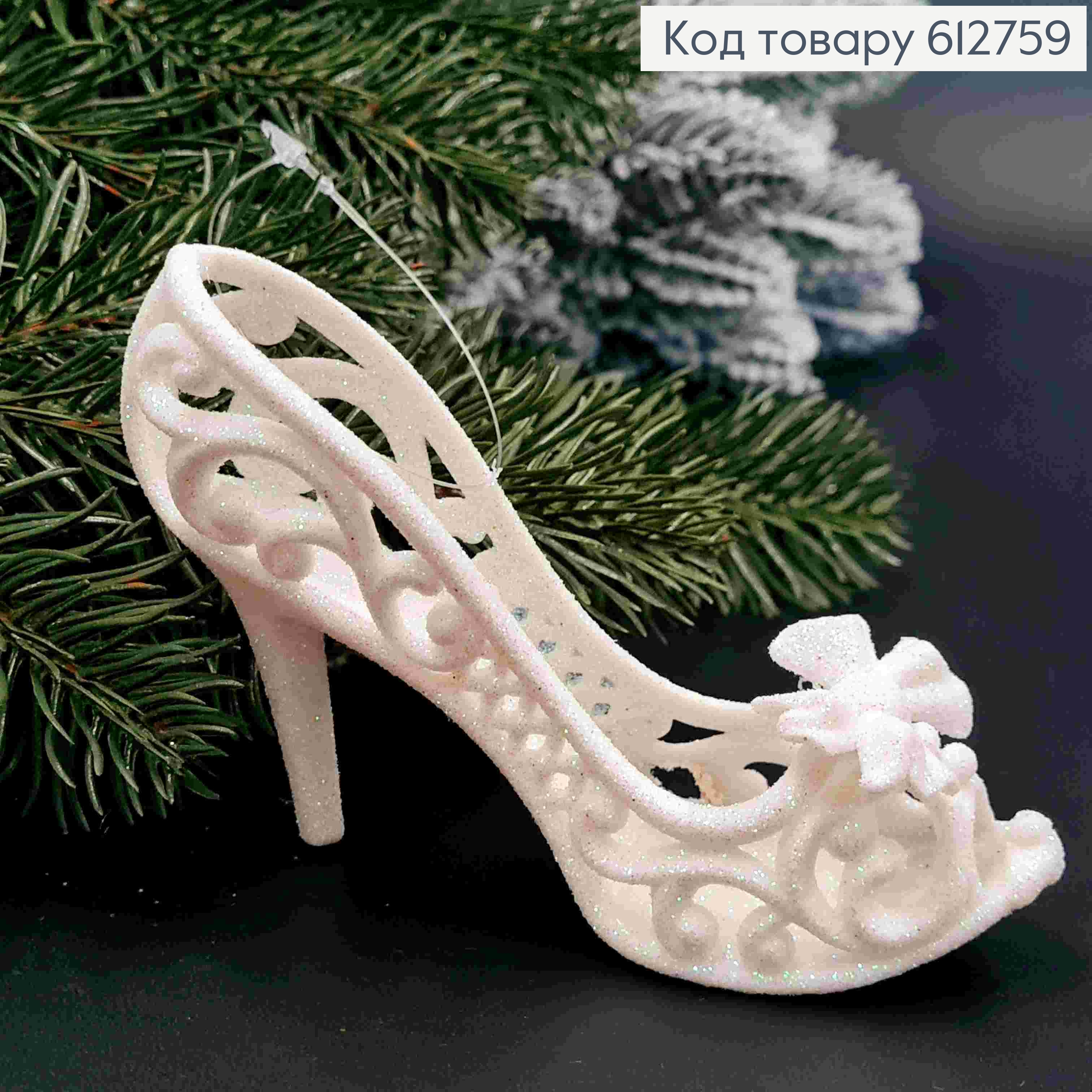 Фигурка блеск "ТУФЕЛЬКА", БЕЛАЯ, размер 12*8*3,5см, новогоднее украшение пластиковое, Украина