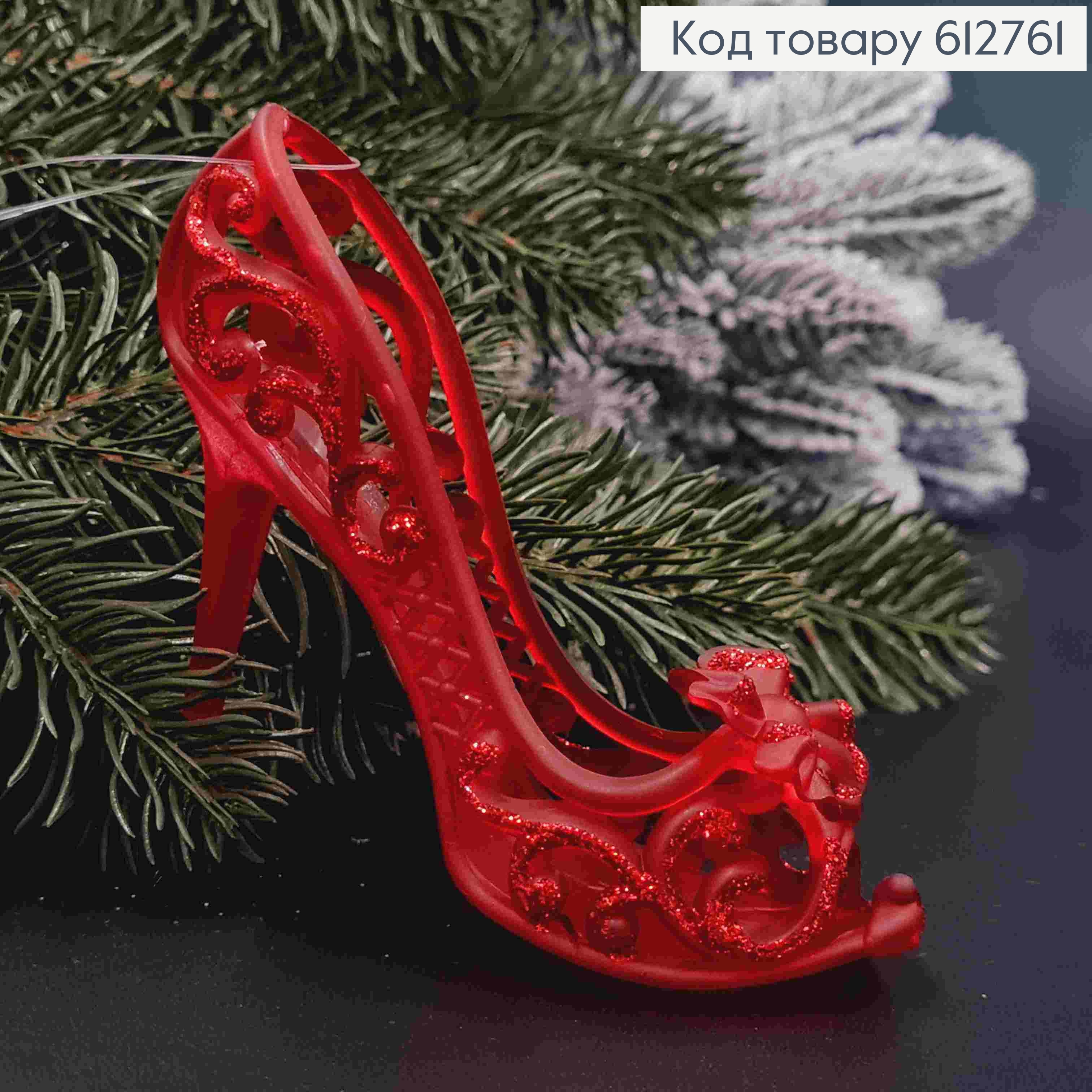 Фигурка матовая "ТУФЕЛЬКА", КРАСНАЯ, размер 12*8*3,5см, новогоднее украшение пластиковое, Украина