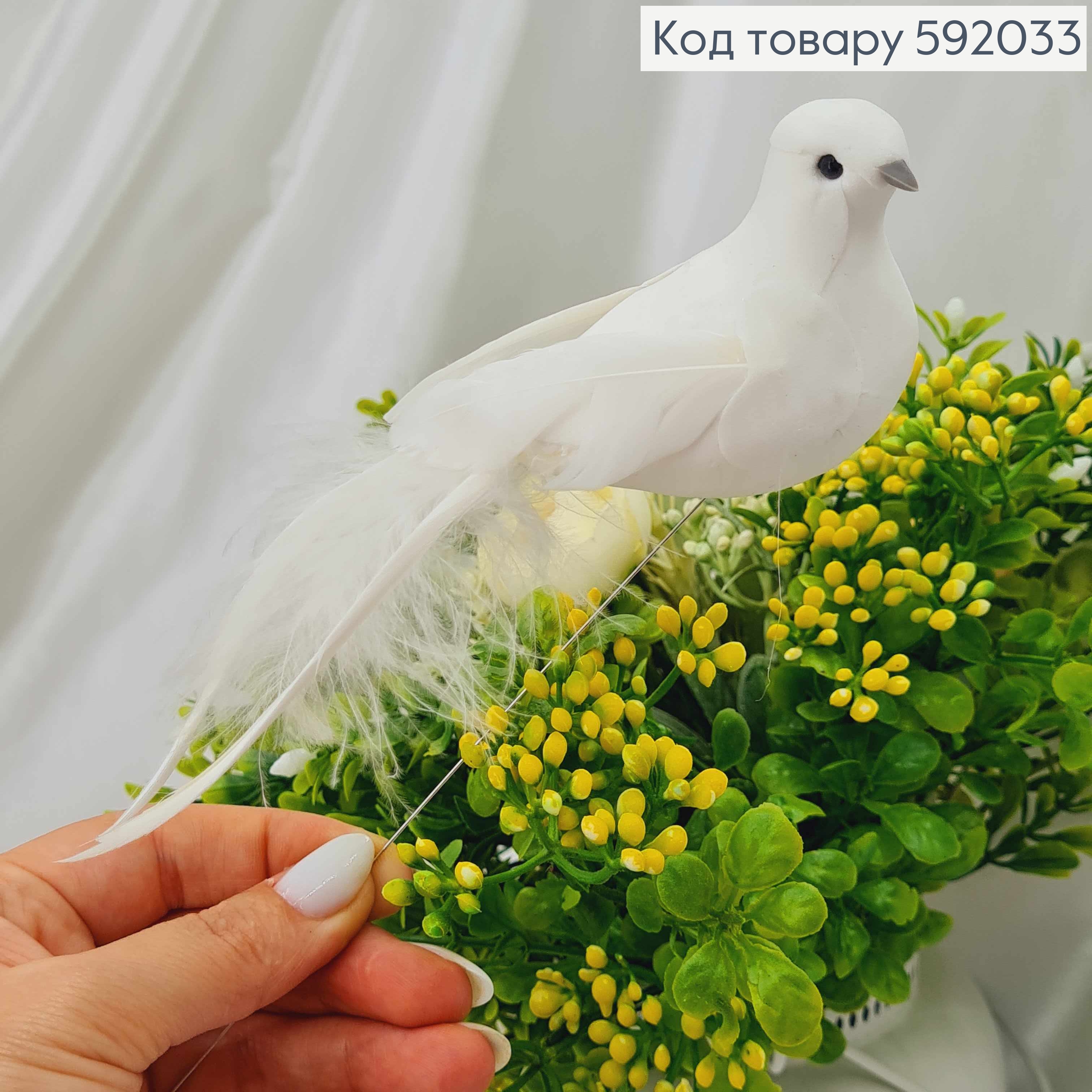 Флористическая заколка, 13см, ПТАШЕЧКА белого цвета, с хвостиком с тоненькими и пушистыми перьями, Польша