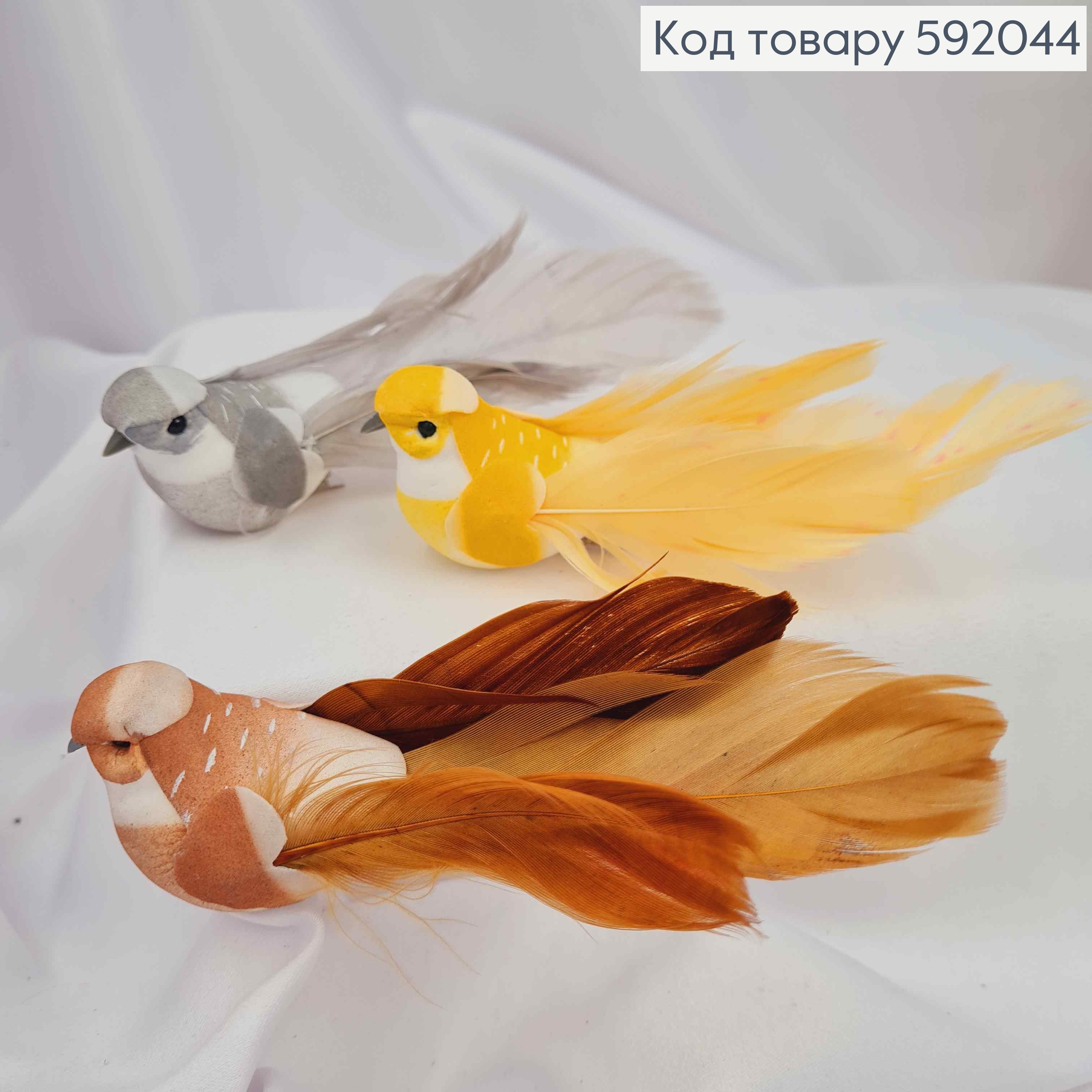 Флористическая заколка, Птичка пастельных цветов с перьями и Серой головой, 15см, в ассортименте 592051 фото