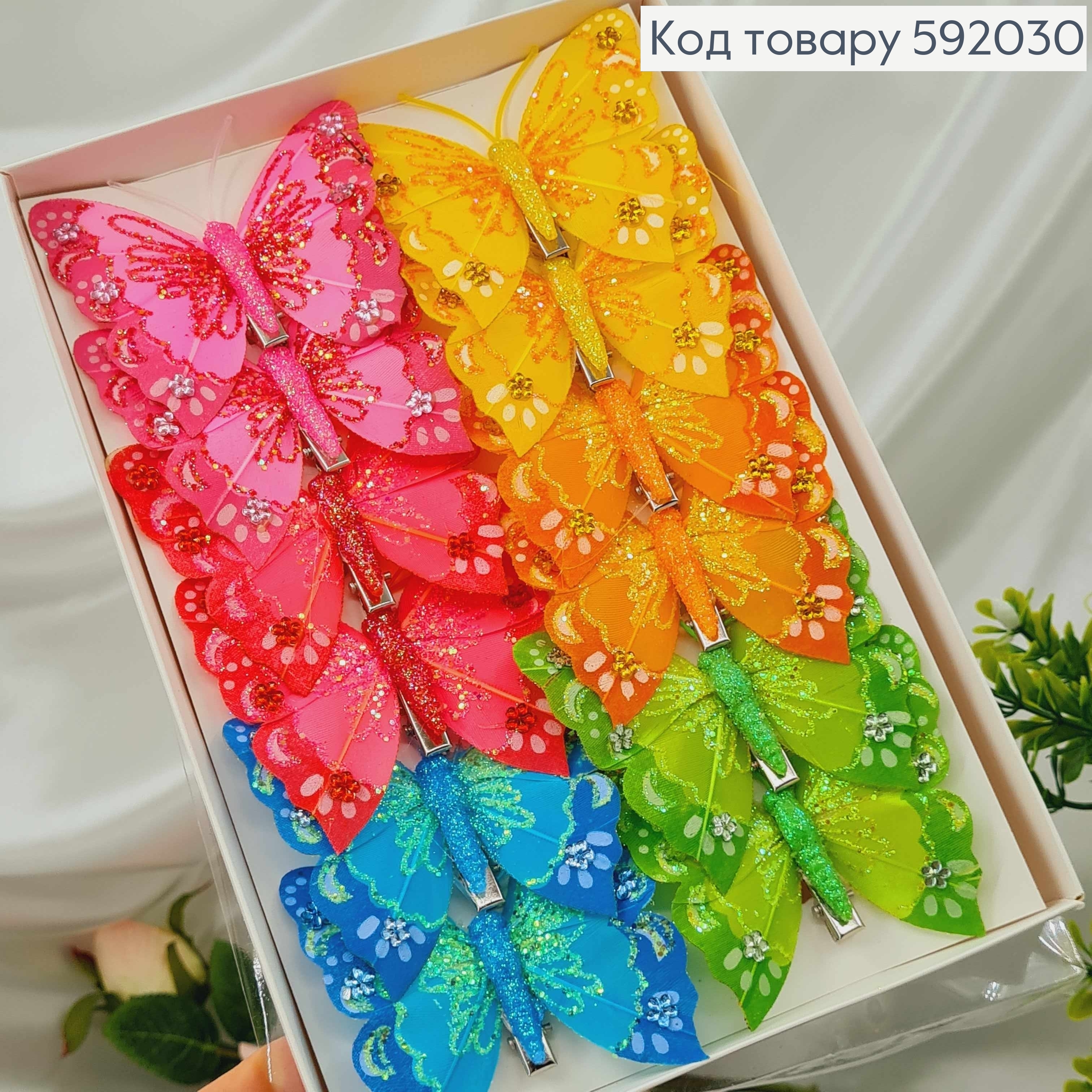Флористическая заколка, Бабочка пастельных цветов с Блеском, 4см, в ассортименте 592055 фото