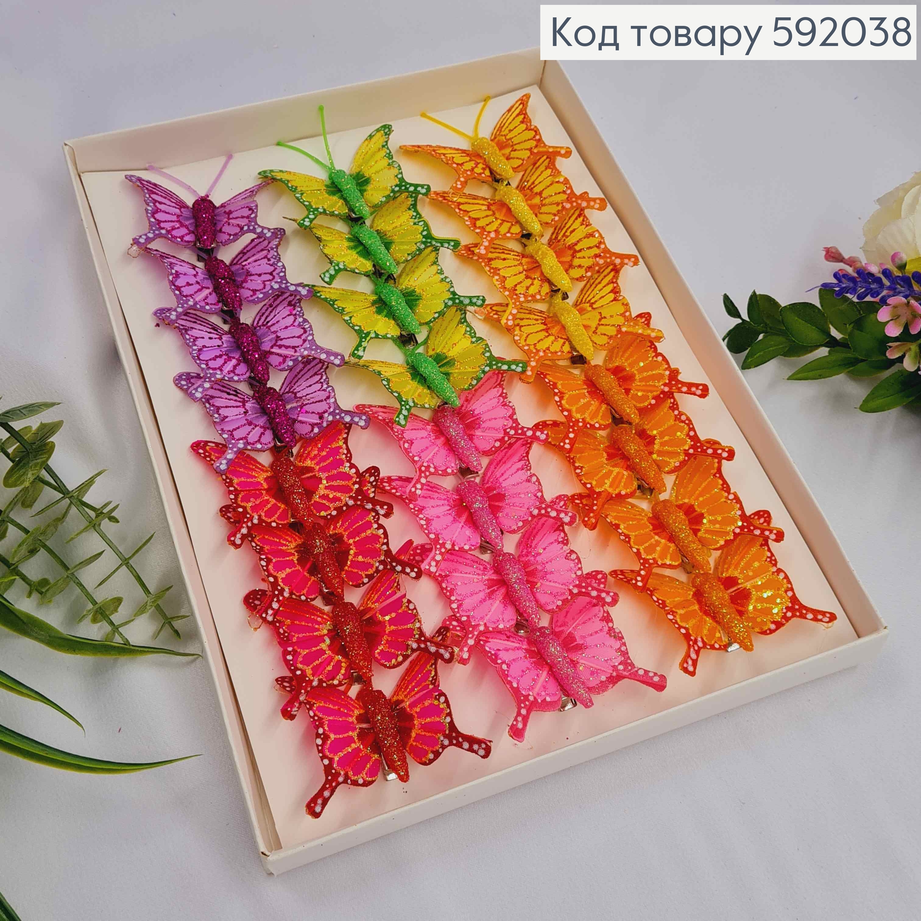 Флористическая заколка, Бабочка ярких цветов с блестками, 4,5см, в ассорт.