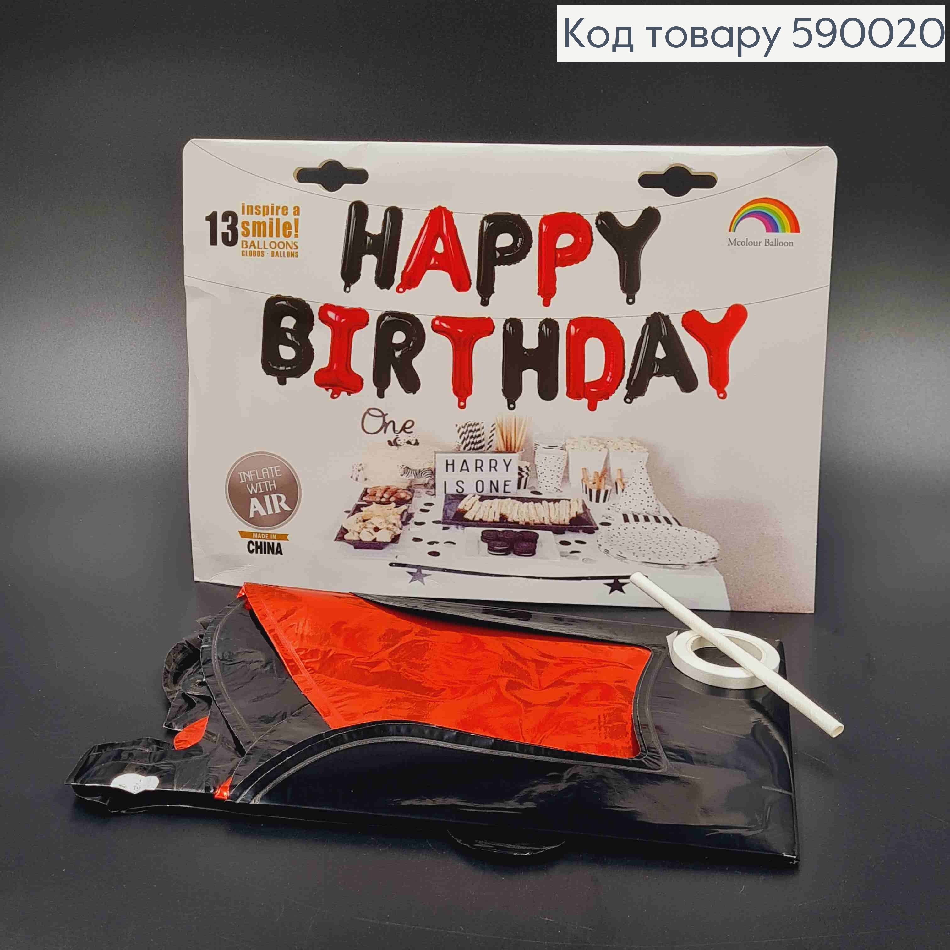 Фольгированная гирлянда Надувная, ЧЕРНО-КРАСНЫЕ, "HAPPY BIRTHDAY" (13букв/уп)