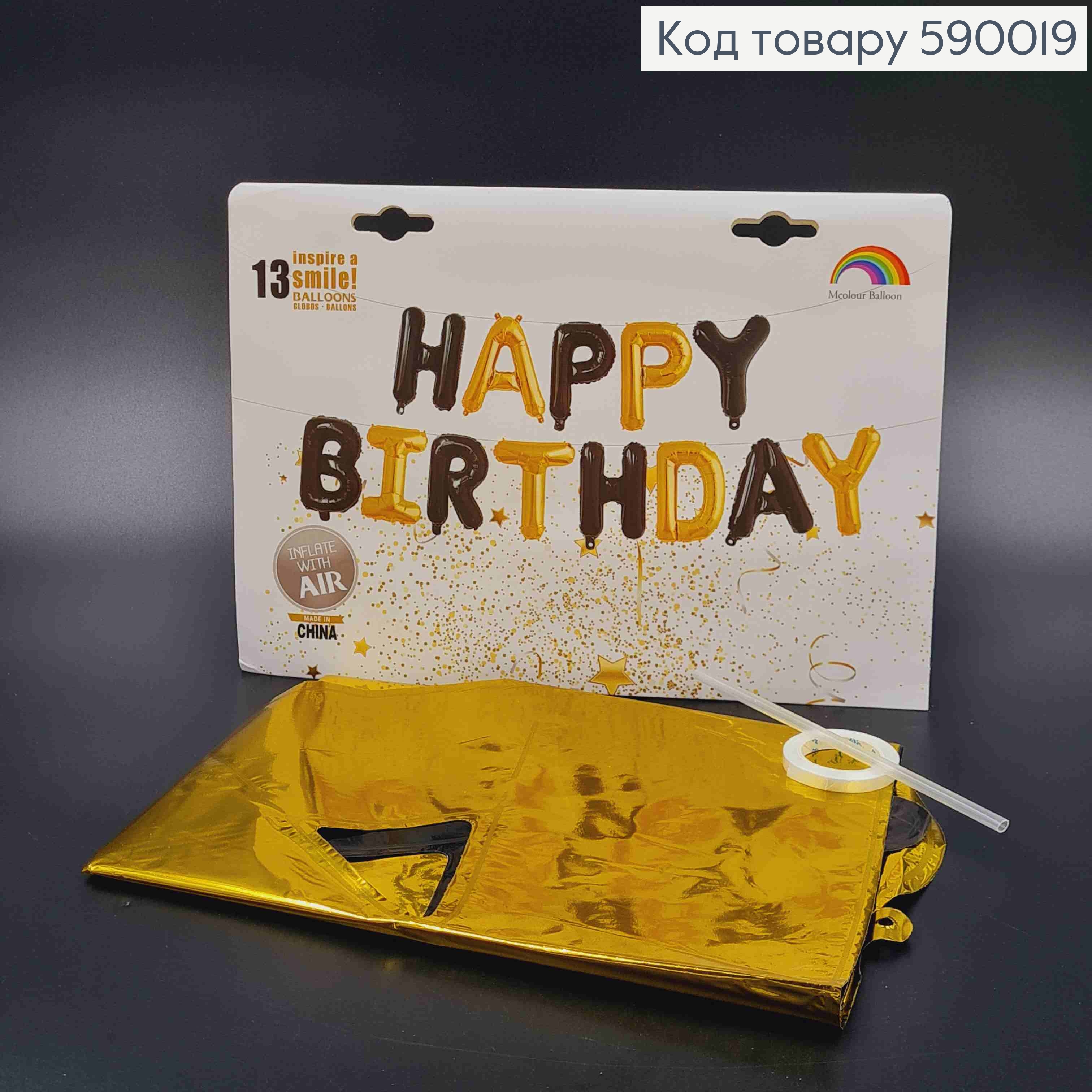 Фольгированная гирлянда Надувная, ЧЕРНО-ЗОЛОТАЯ, "HAPPY BIRTHDAY" (13букв/уп)