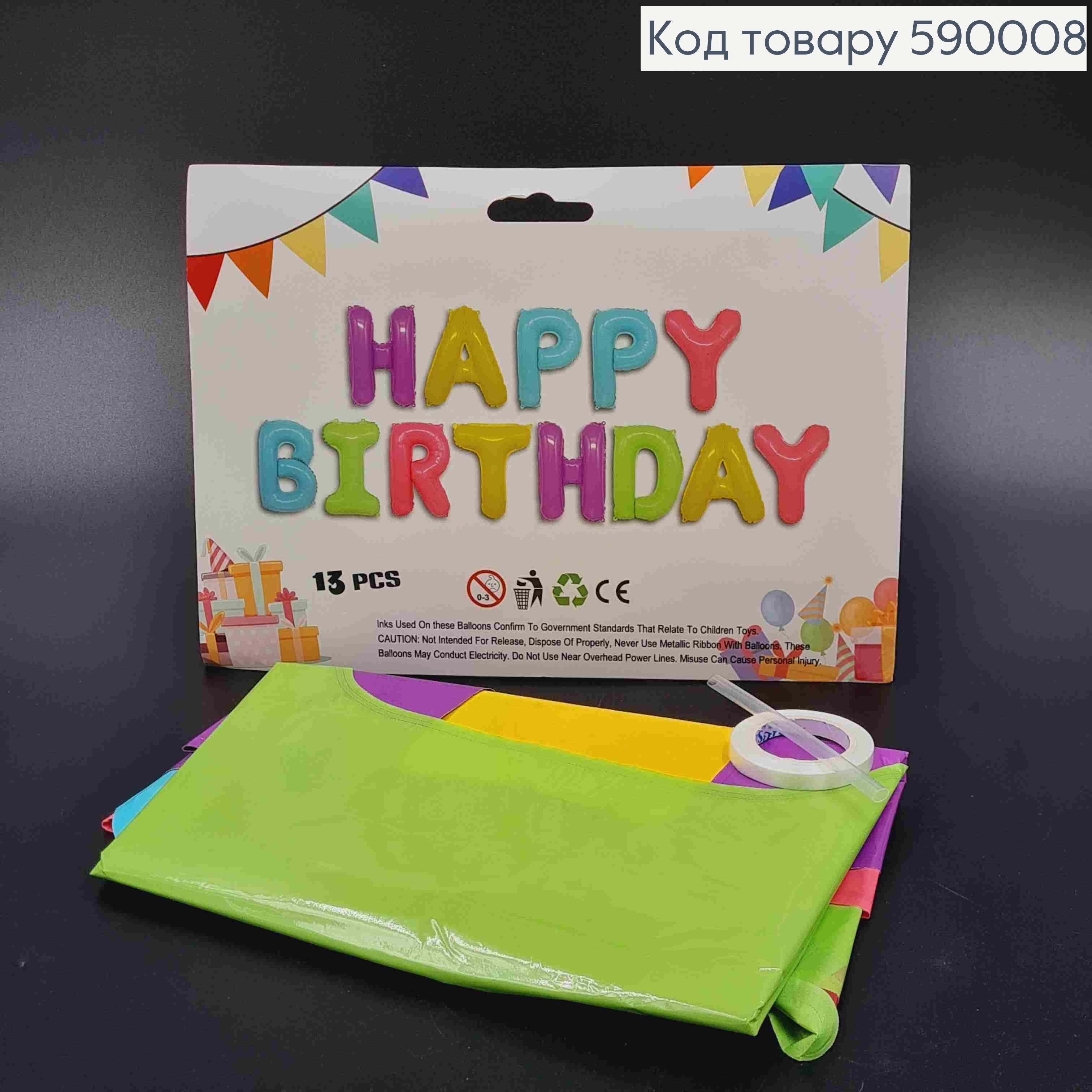 Фольгированная гирлянда Надувная, ЦВЕТНАЯ, "HAPPY BIRTHDAY" (13букв/уп)