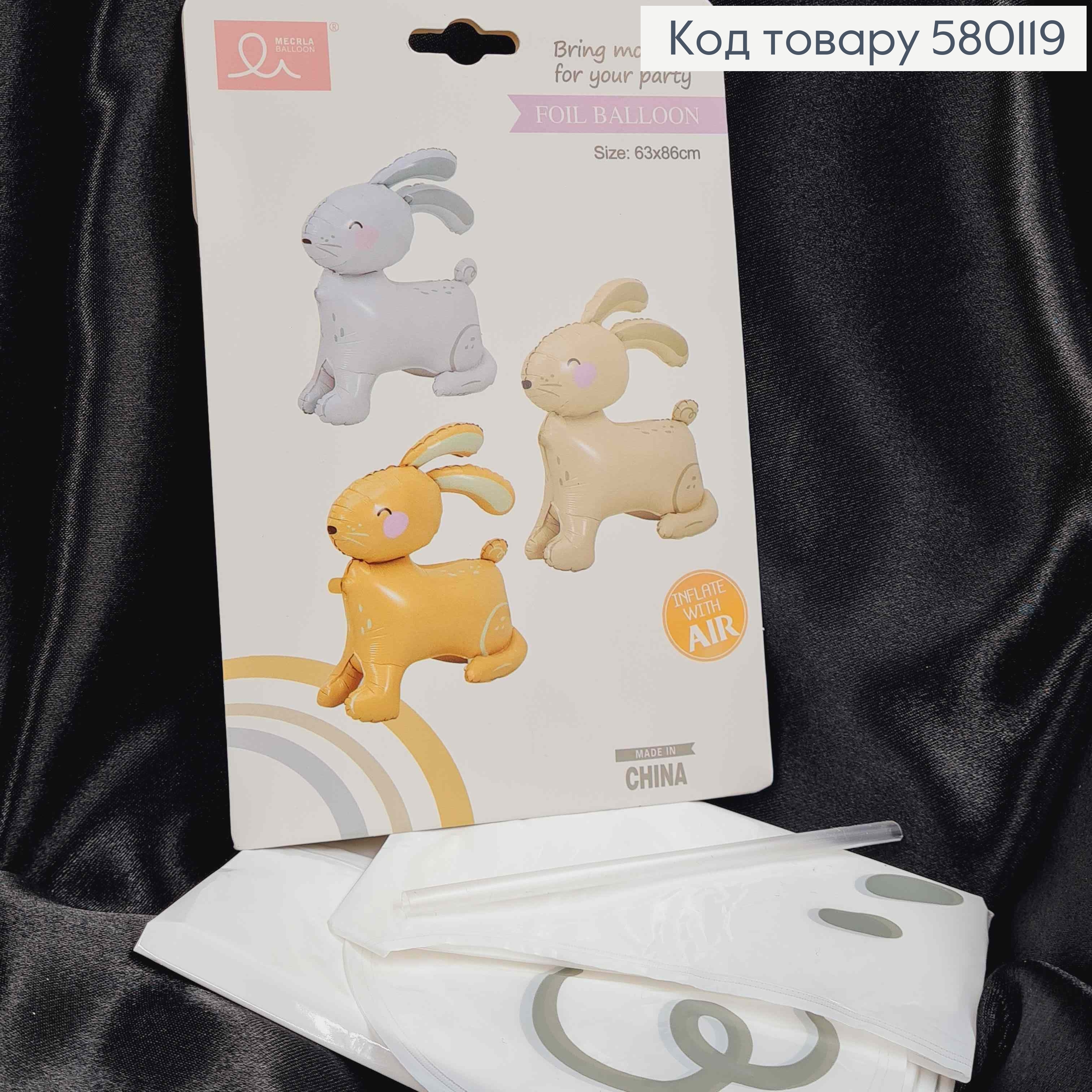 Фольгированный шарик, "Зайка", Белого цвета, 63*86см