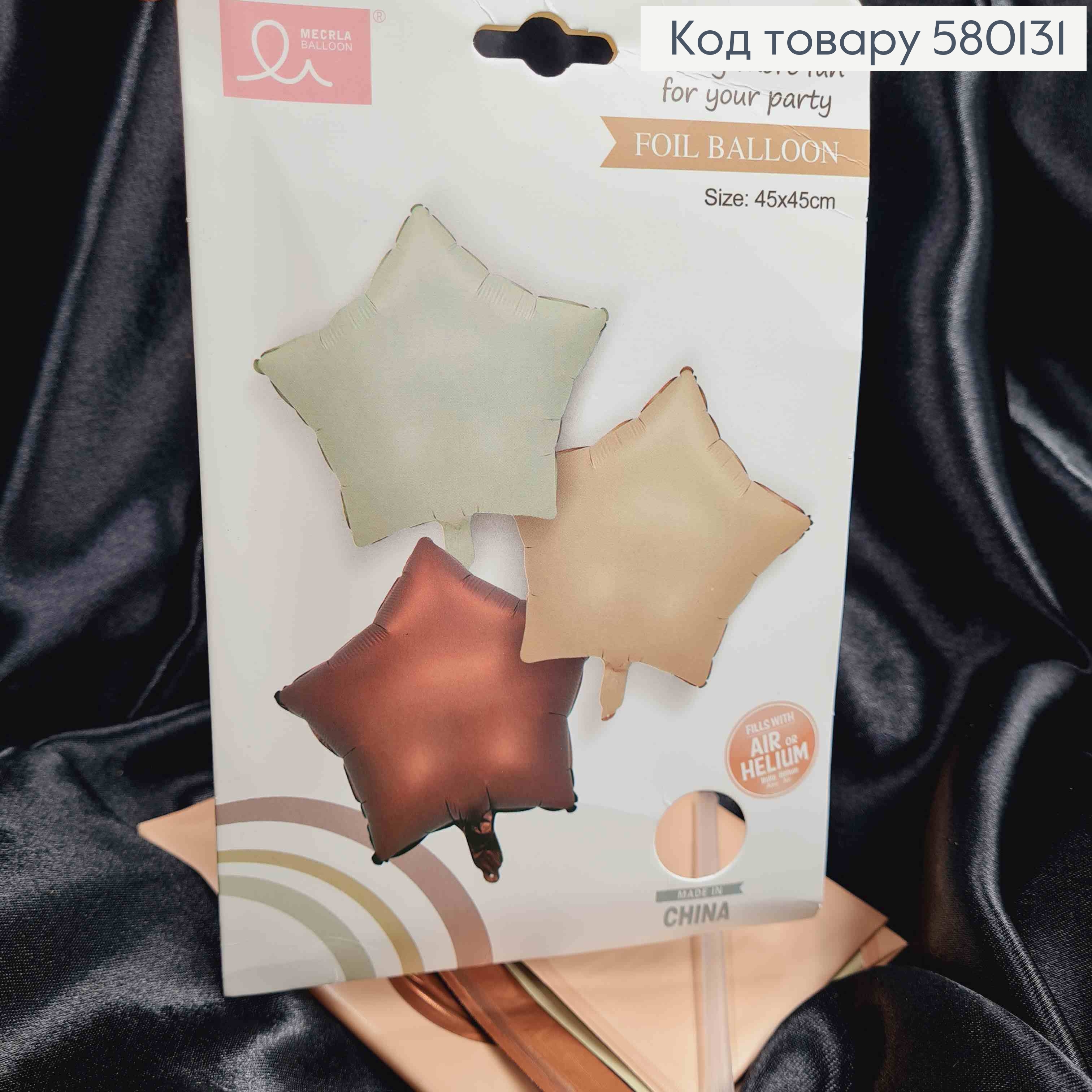 Фольгированные шарики "Звездочки", 3шт/уп, Свет бежевого/бежевого/коричневого цвета, 45*45см,18''