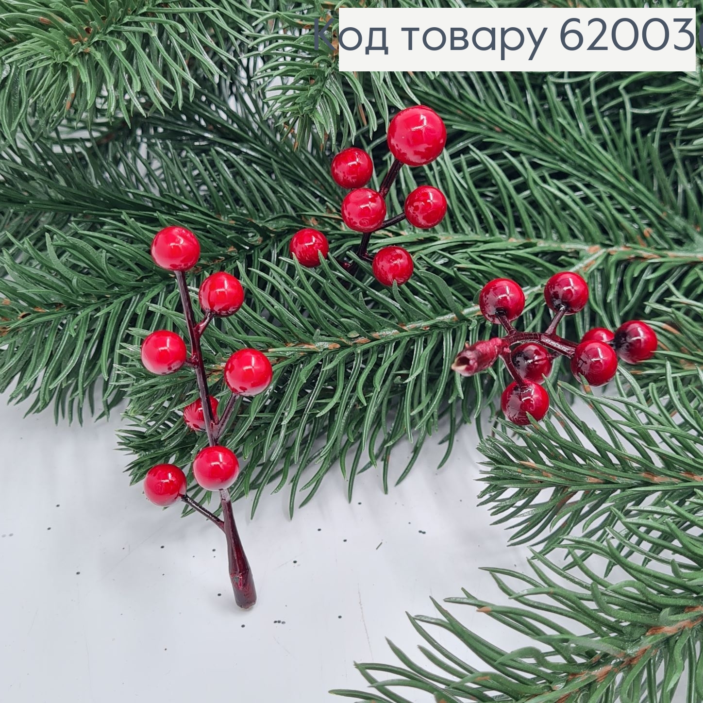 Снежная ветка с ягодами, КРАСНОГО цвета, на металлическом стержне, выс 60см, новогодний декор 620755 фото