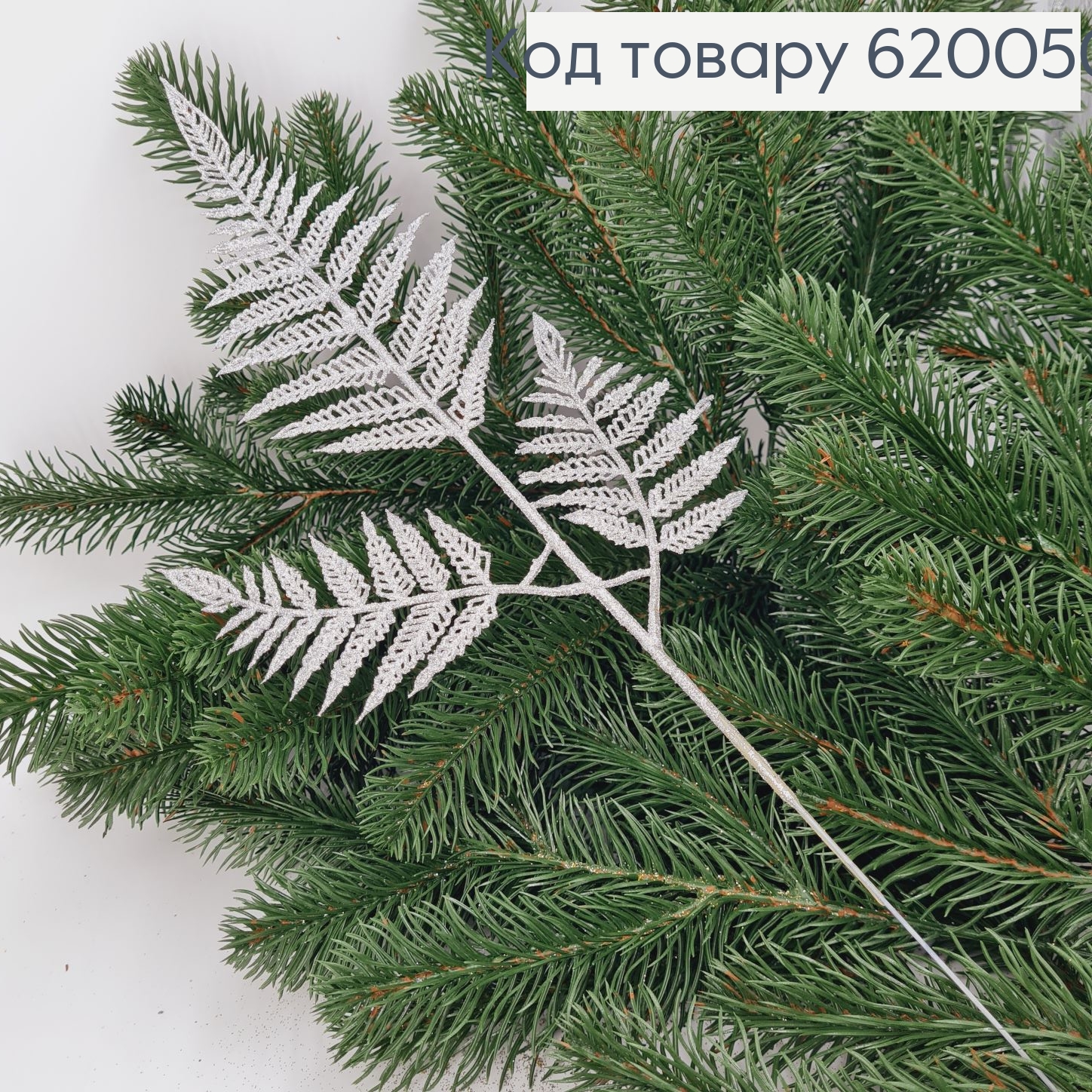 Веточка папоротная глитерная серебряная на металлическом стержне 40 см.