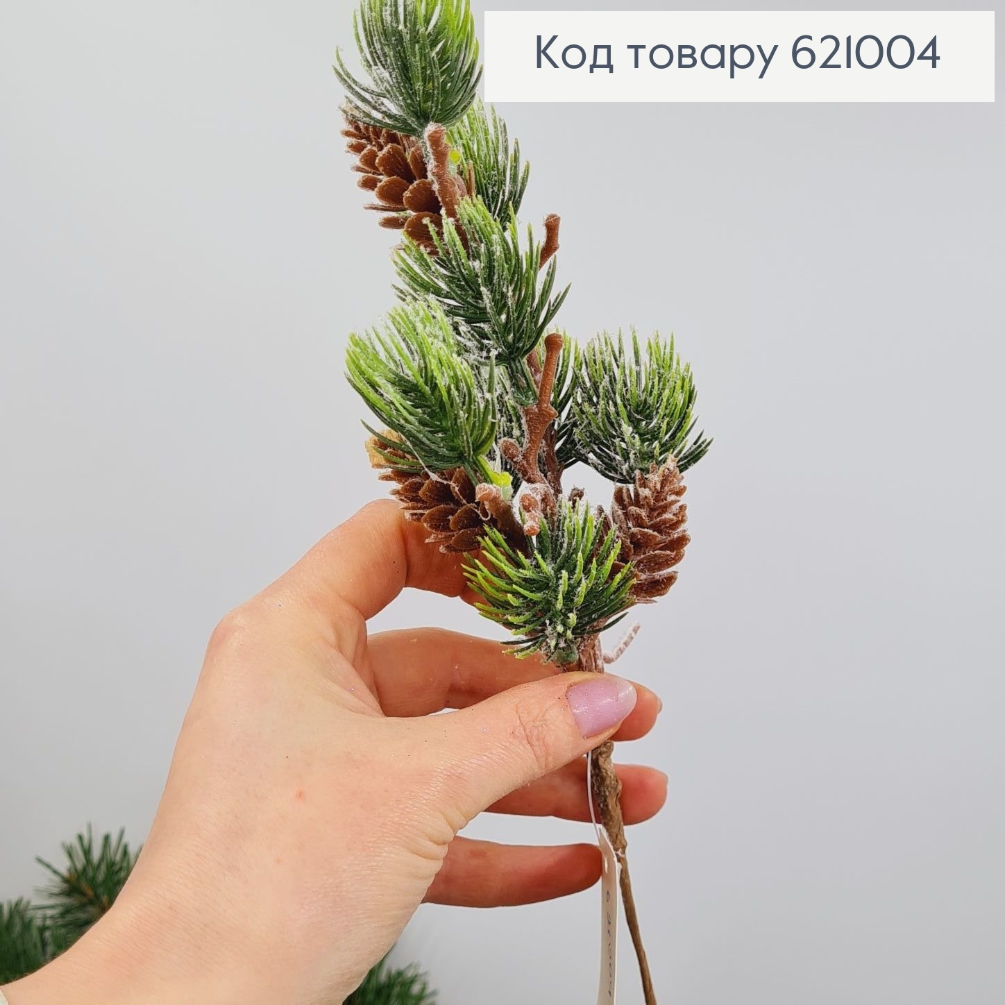 Веточка сосны с шишкой на металлическом стержне 29 см.
