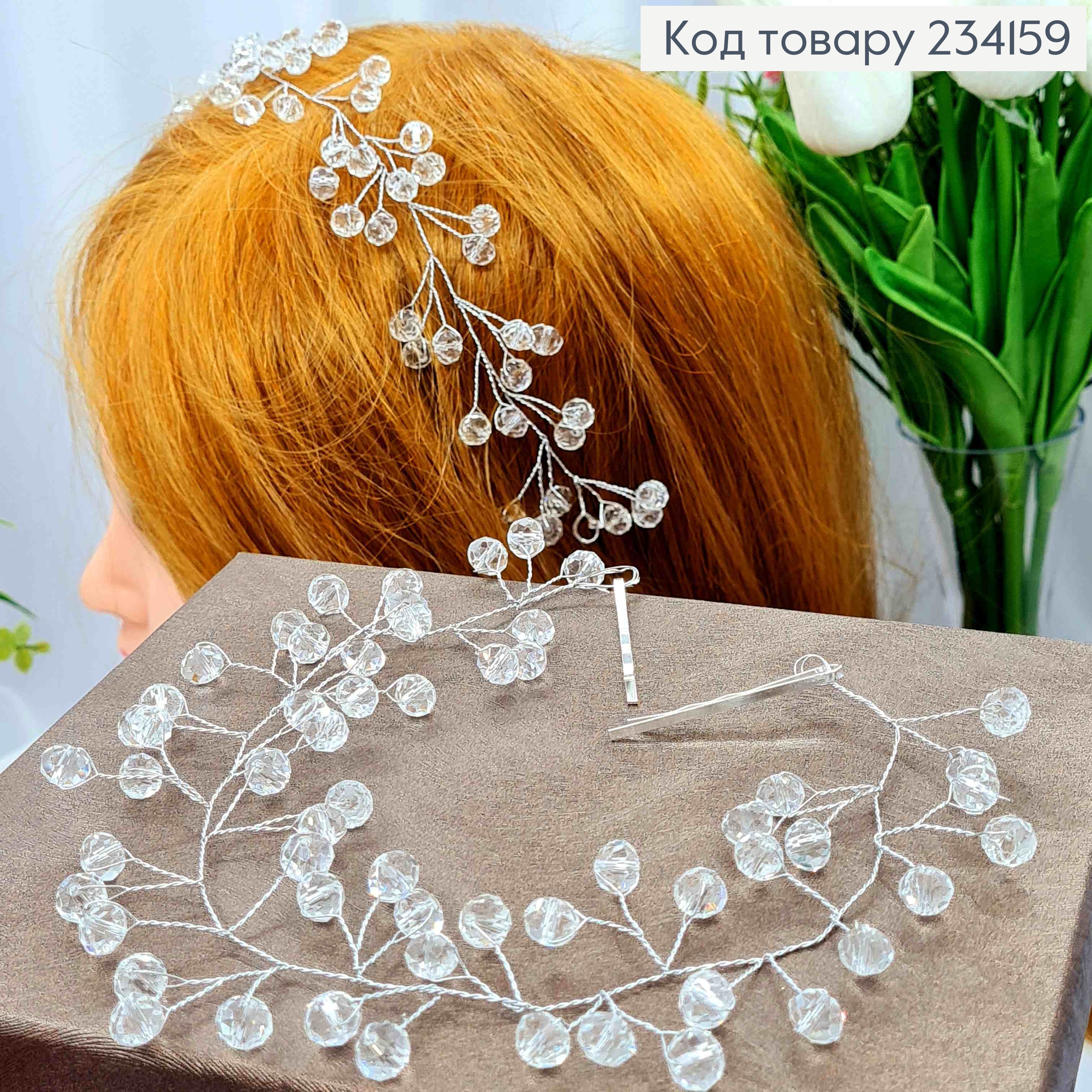 Веточка в волосах, с перламутровыми и прозрачными бусинками, 30см, серебряного цвета. 234181 фото