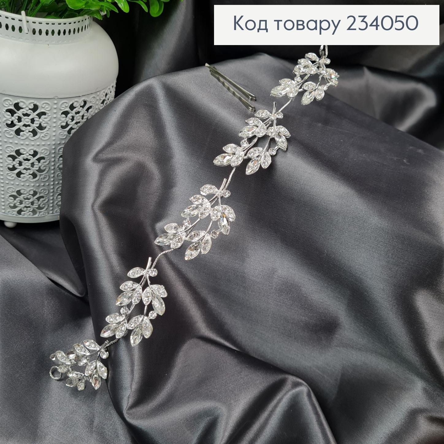 Веточка в волосах, с перламутровыми и прозрачными бусинками, 30см, серебряного цвета. 234181 фото